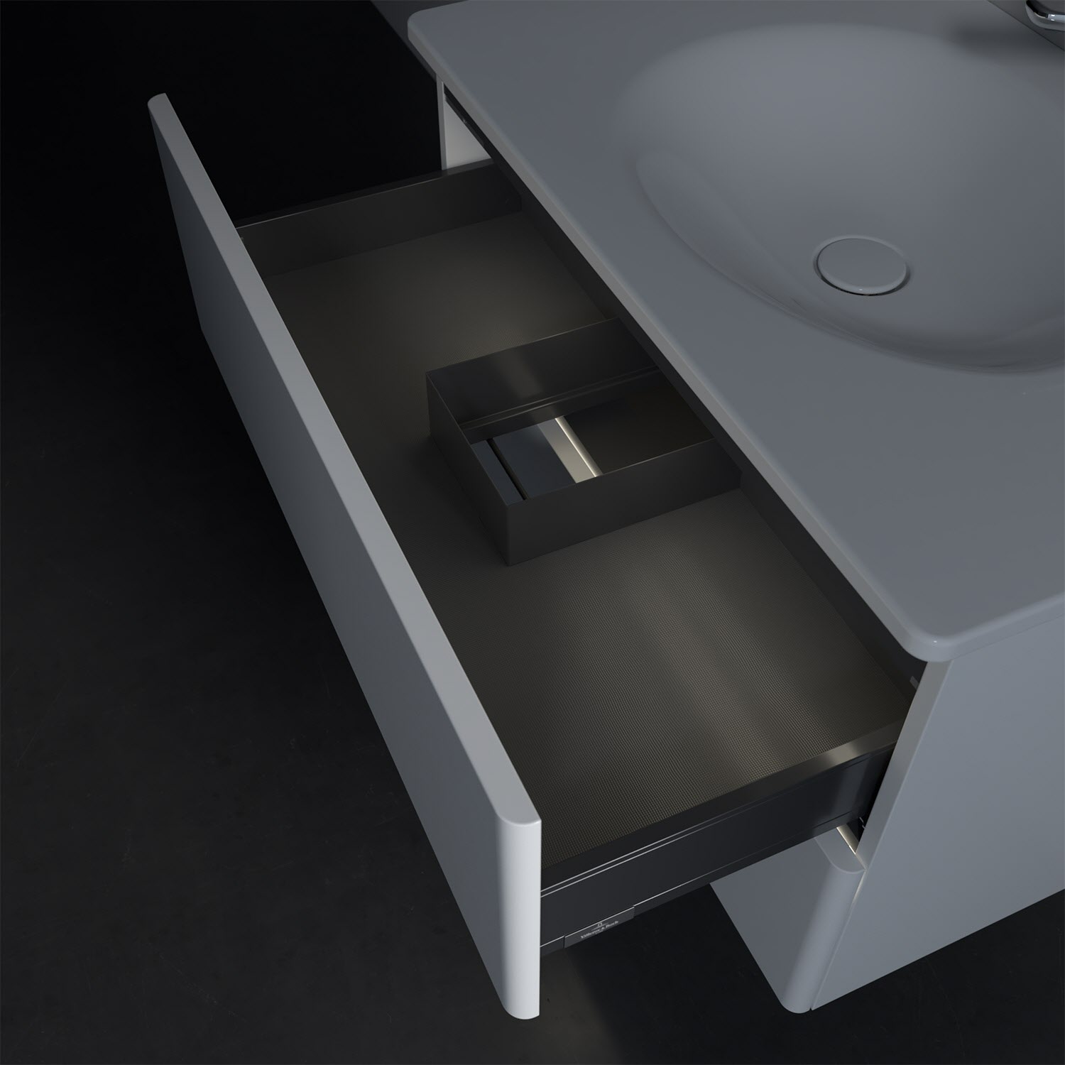 - kein Umfallen oder Verrutschen von Pflegeprodukten in den Schubladen dank rutschhemmendem Boden