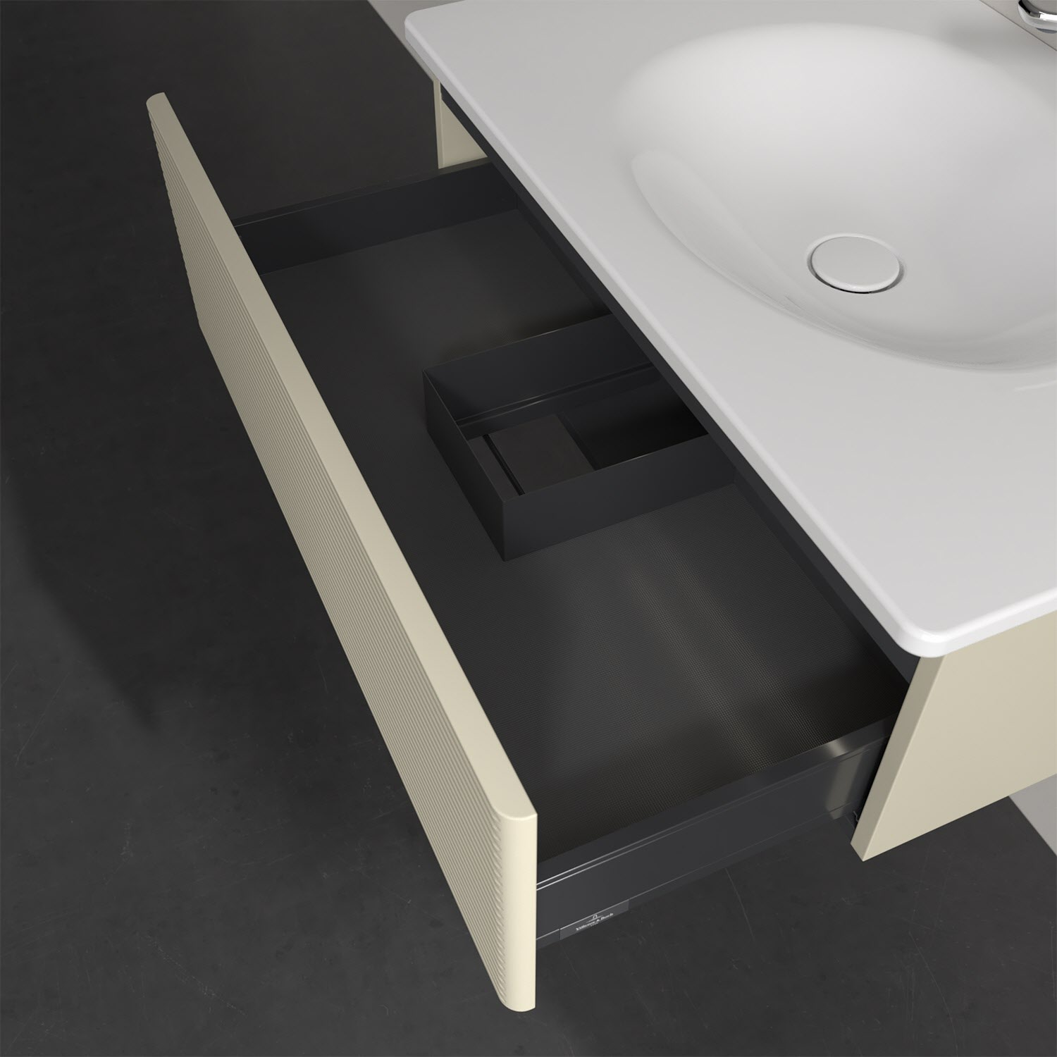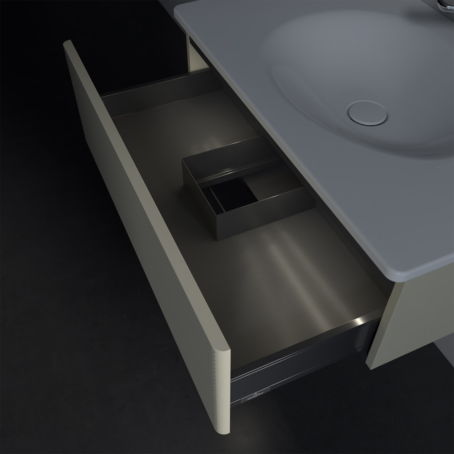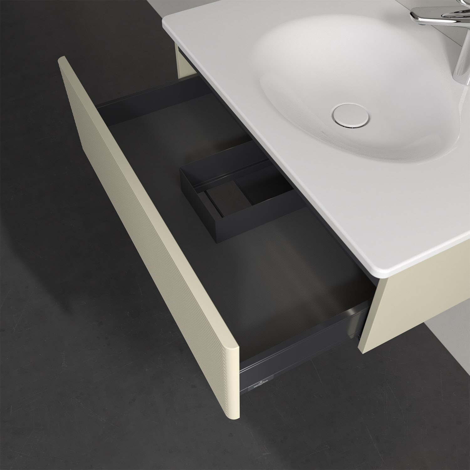 - kein Umfallen oder Verrutschen von Pflegeprodukten in den Schubladen dank rutschhemmendem Boden