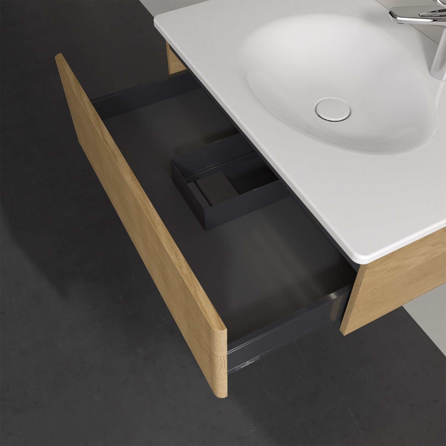 - kein Umfallen oder Verrutschen von Pflegeprodukten in den Schubladen dank rutschhemmendem Boden