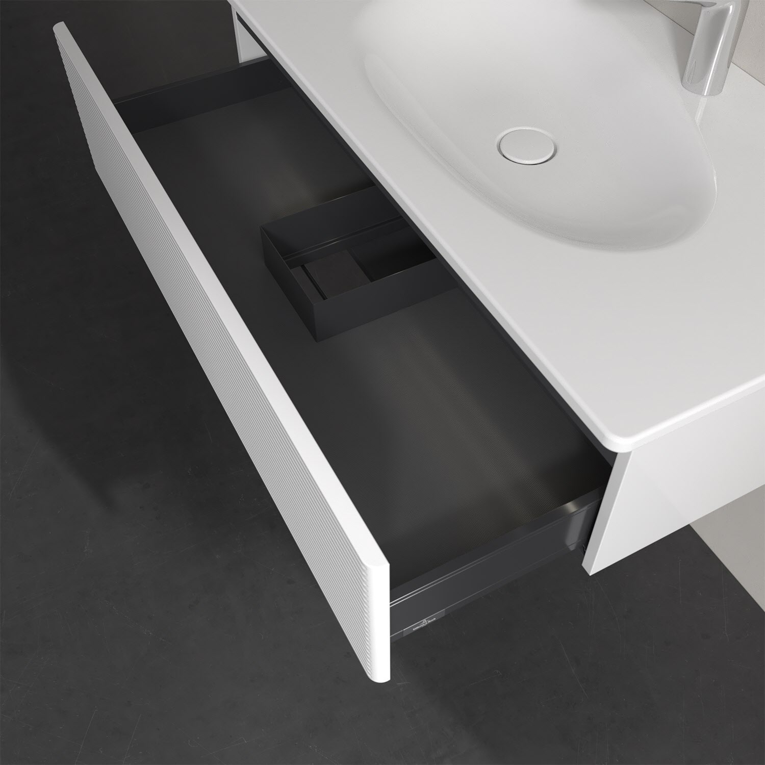 - kein Umfallen oder Verrutschen von Pflegeprodukten in den Schubladen dank rutschhemmendem Boden