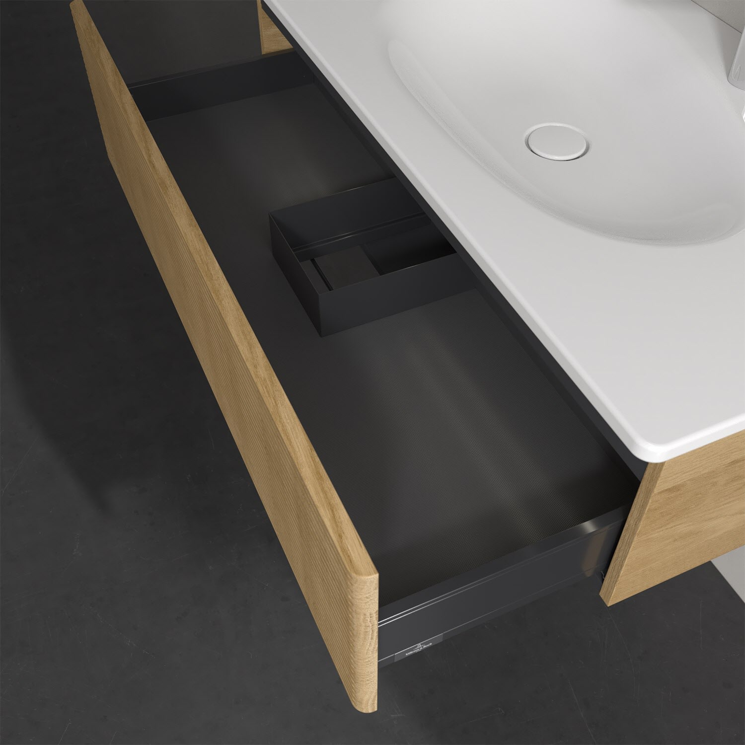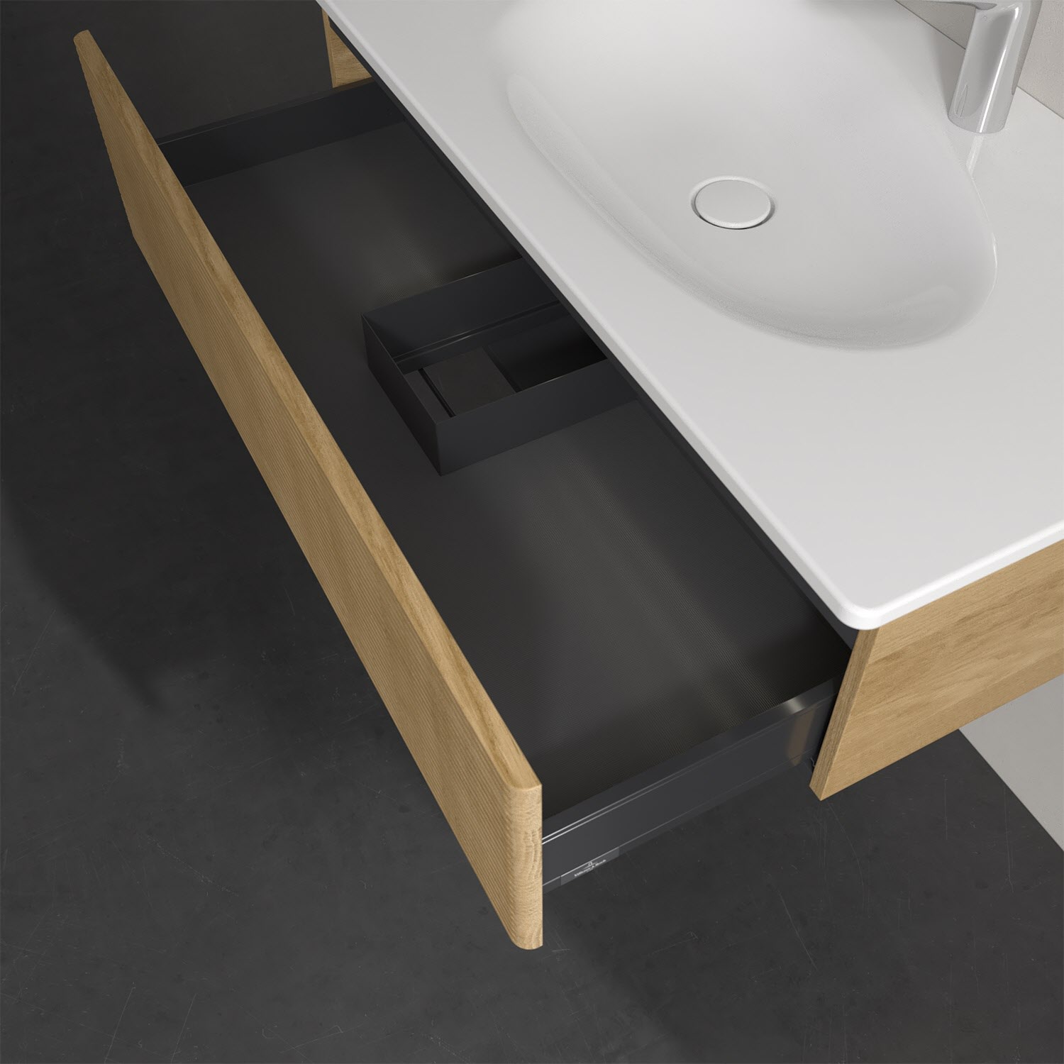- kein Umfallen oder Verrutschen von Pflegeprodukten in den Schubladen dank rutschhemmendem Boden