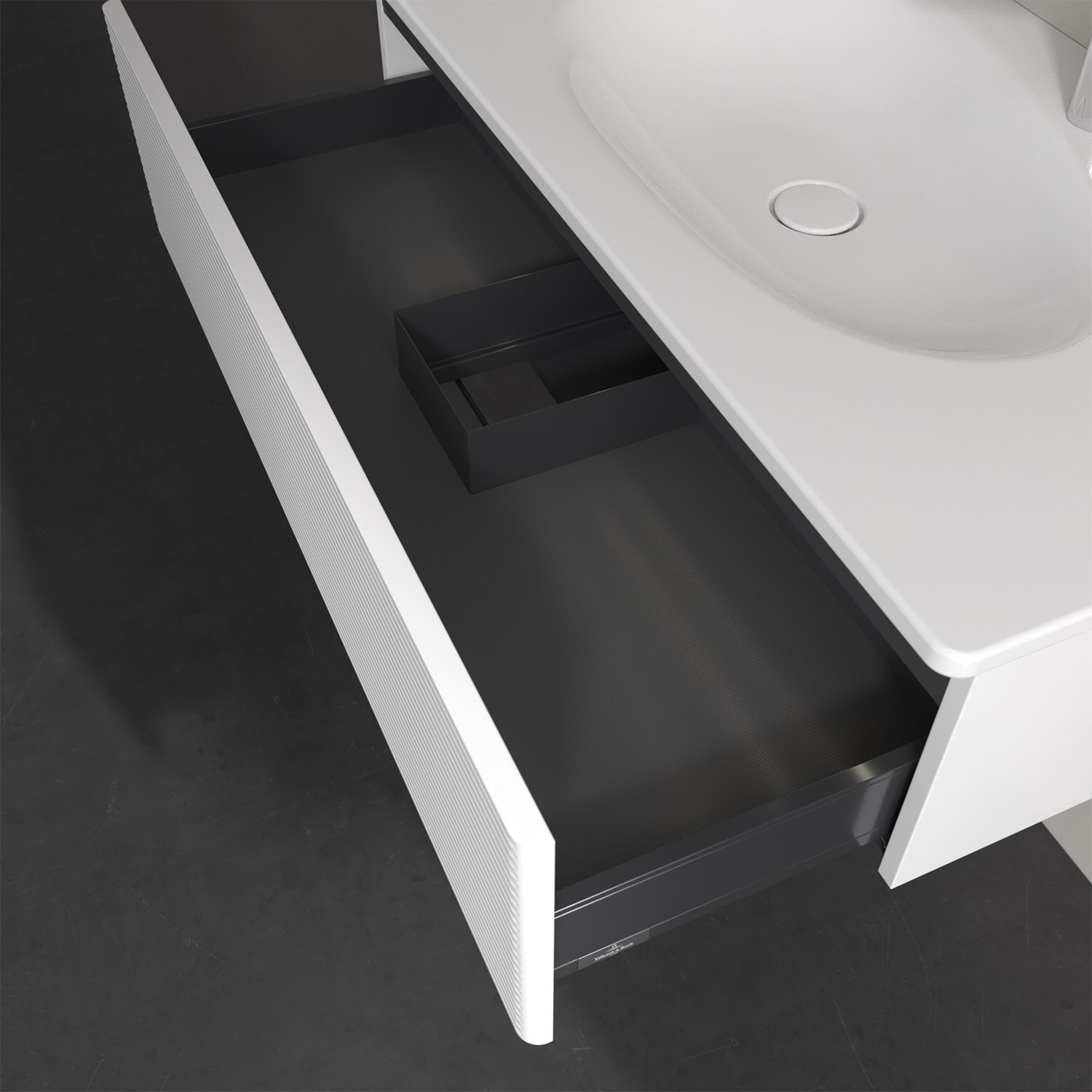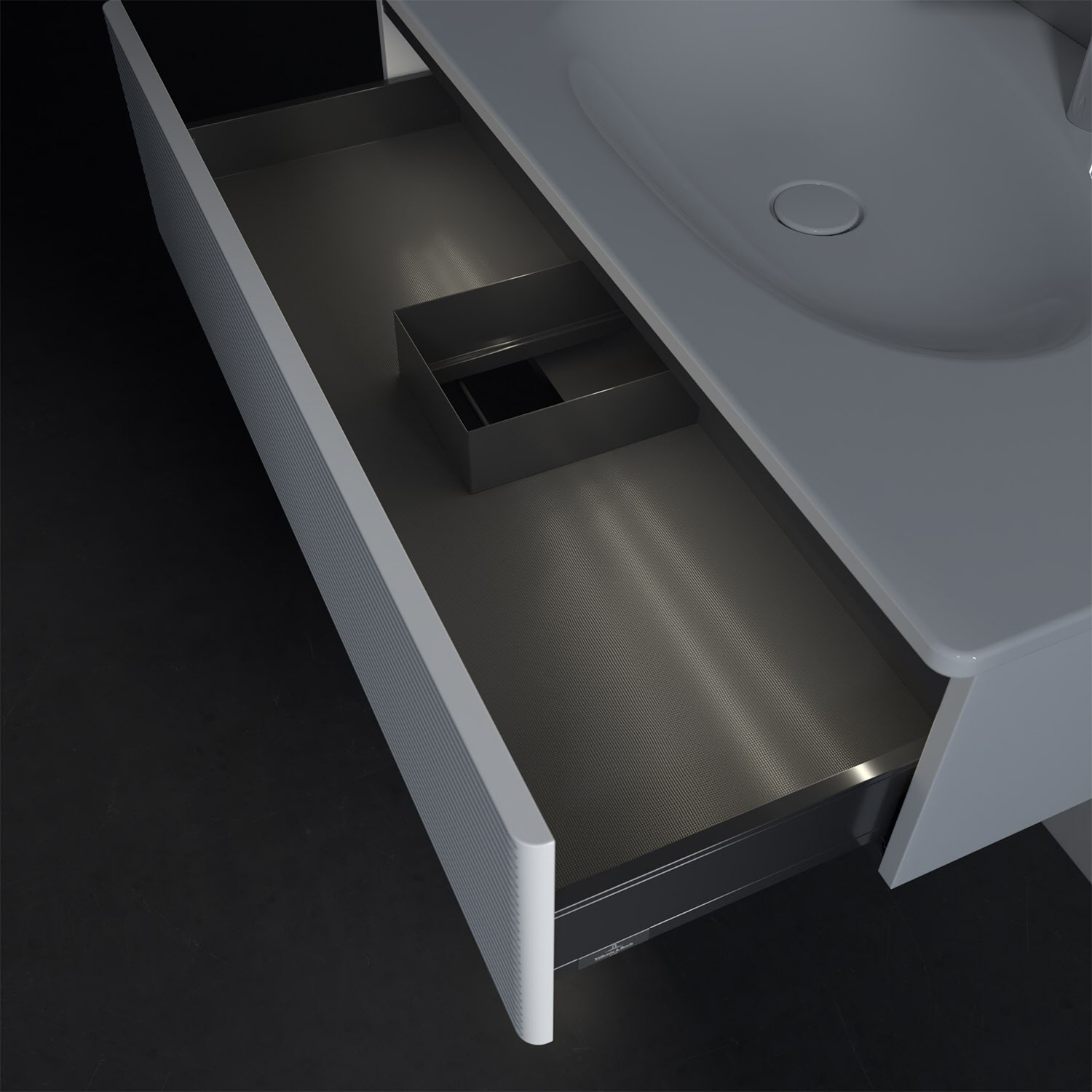 - kein Umfallen oder Verrutschen von Pflegeprodukten in den Schubladen dank rutschhemmendem Boden