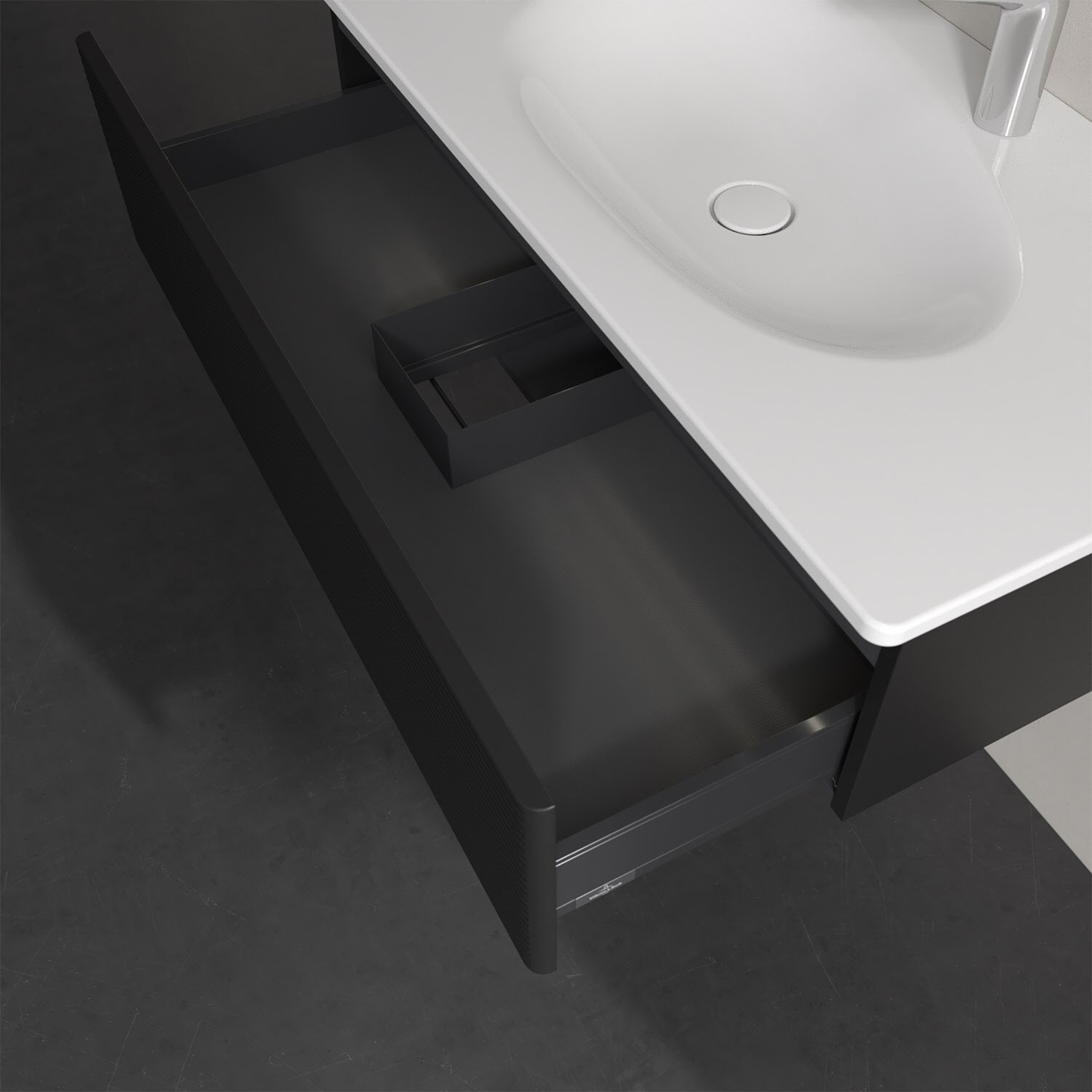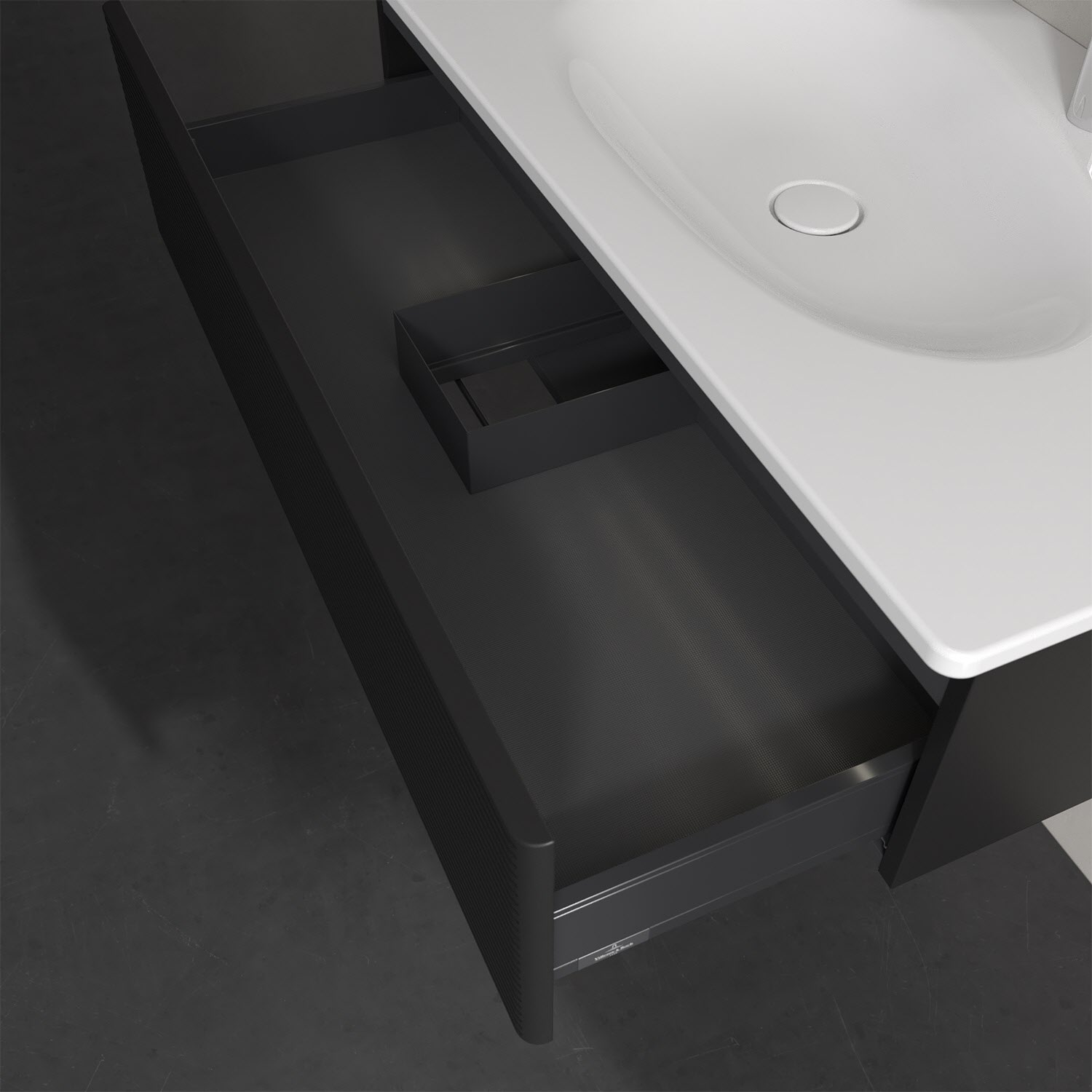 - kein Umfallen oder Verrutschen von Pflegeprodukten in den Schubladen dank rutschhemmendem Boden