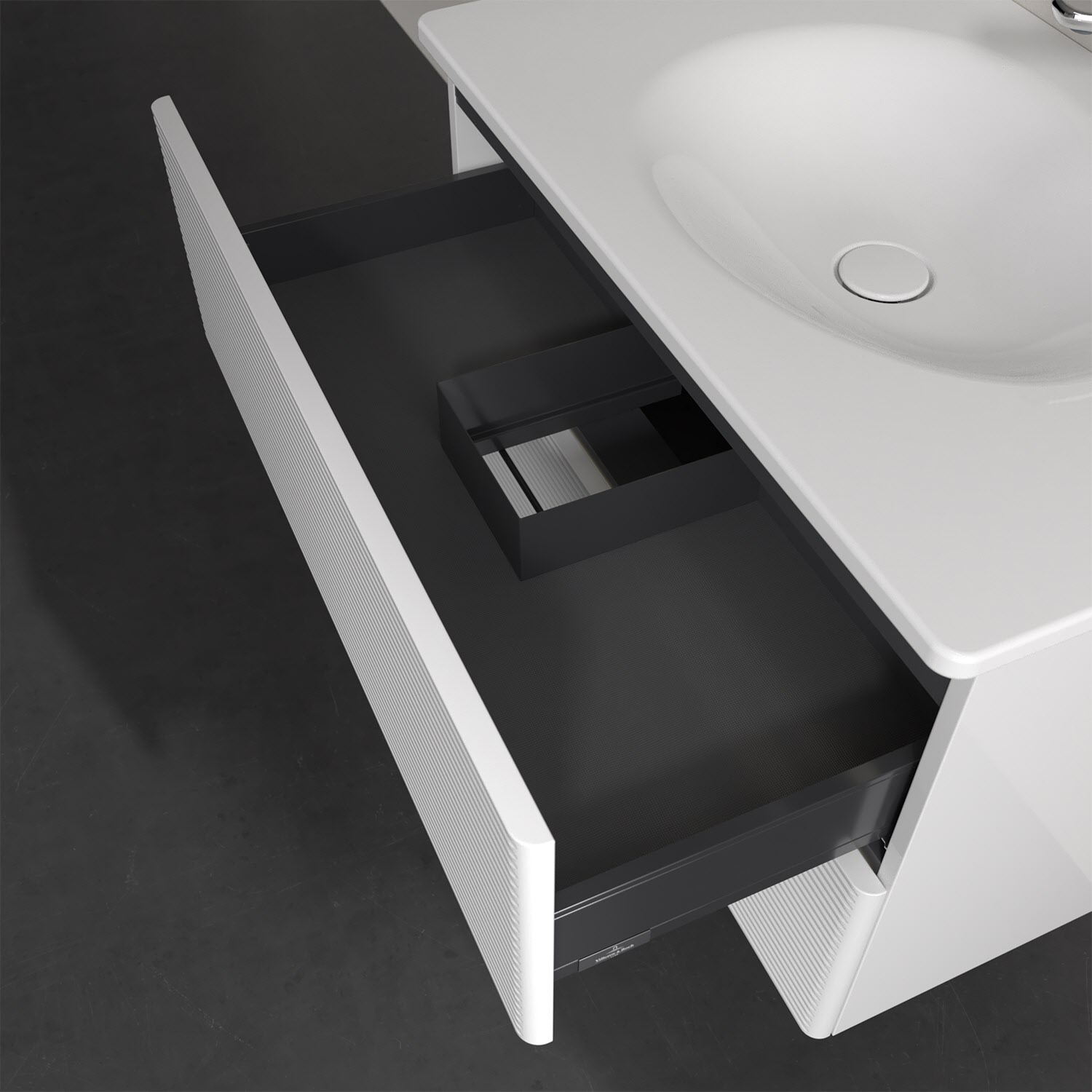 Der Antao Waschtischunterschrank von Villeroy & Boch vereint Funktionalität, Qualität und Stil – das ideale Möbelstück also am Waschplatz. Mit seiner Größe bietet der wandhängende Unterschrank genügend Stauraum für Handtücher, Pflegeprodukte oder andere Badutensilien. Die grifflosen Auszüge lassen sich bequem per Druck öffnen und aufgrund von Antirutschboden und Vollauszug ist der Inhalt immer ordentlich an seinem Platz und griffbereit. Zusätzlich verfügt dieses Modell über eine Beleuchtung in Warmweiß, die unkompliziert beim Öffnen gesteuert wird. SoftClosing Funktion sei dank, schließen die Auszüge geräuschlos und sanft. Optisch verleiht Antao mit seinen abgerundeten Kanten und der strukturierten Front jedem Raum ein modernes und gemütliches Ambiente! Für eine besonders leichte Pflege sorgt die mehrschichtig deckend lackierte Oberfläche. Bei der Ausführung in Massivholz wird dank des verarbeiteten Massivholzes jedes Möbel zu einem Unikat, das sich durch das lebendige Naturmaterial durch seine einzigartige Struktur und Maserung auszeichnet.