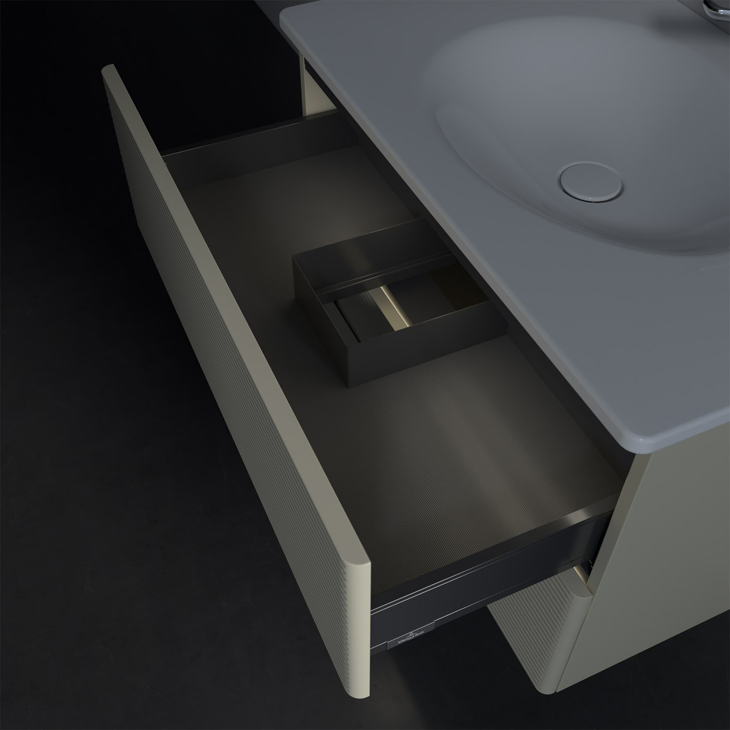 Der Antao Waschtischunterschrank von Villeroy & Boch vereint Funktionalität, Qualität und Stil – das ideale Möbelstück also am Waschplatz. Mit seiner Größe bietet der wandhängende Unterschrank genügend Stauraum für Handtücher, Pflegeprodukte oder andere Badutensilien. Die grifflosen Auszüge lassen sich bequem per Druck öffnen und aufgrund von Antirutschboden und Vollauszug ist der Inhalt immer ordentlich an seinem Platz und griffbereit. Zusätzlich verfügt dieses Modell über eine Beleuchtung in Warmweiß, die unkompliziert beim Öffnen gesteuert wird. SoftClosing Funktion sei dank, schließen die Auszüge geräuschlos und sanft. Optisch verleiht Antao mit seinen abgerundeten Kanten und der strukturierten Front jedem Raum ein modernes und gemütliches Ambiente! Für eine besonders leichte Pflege sorgt die mehrschichtig deckend lackierte Oberfläche. Bei der Ausführung in Massivholz wird dank des verarbeiteten Massivholzes jedes Möbel zu einem Unikat, das sich durch das lebendige Naturmaterial durch seine einzigartige Struktur und Maserung auszeichnet.