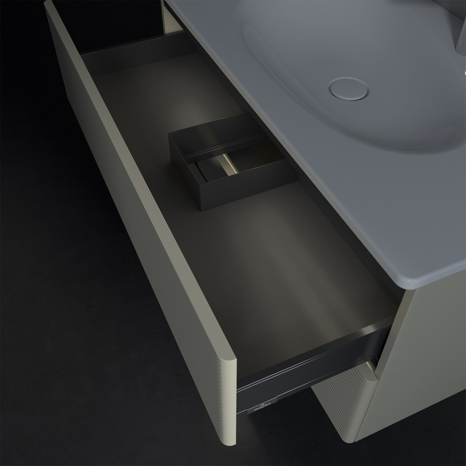 - kein Umfallen oder Verrutschen von Pflegeprodukten in den Schubladen dank rutschhemmendem Boden