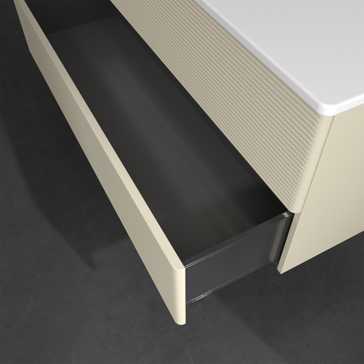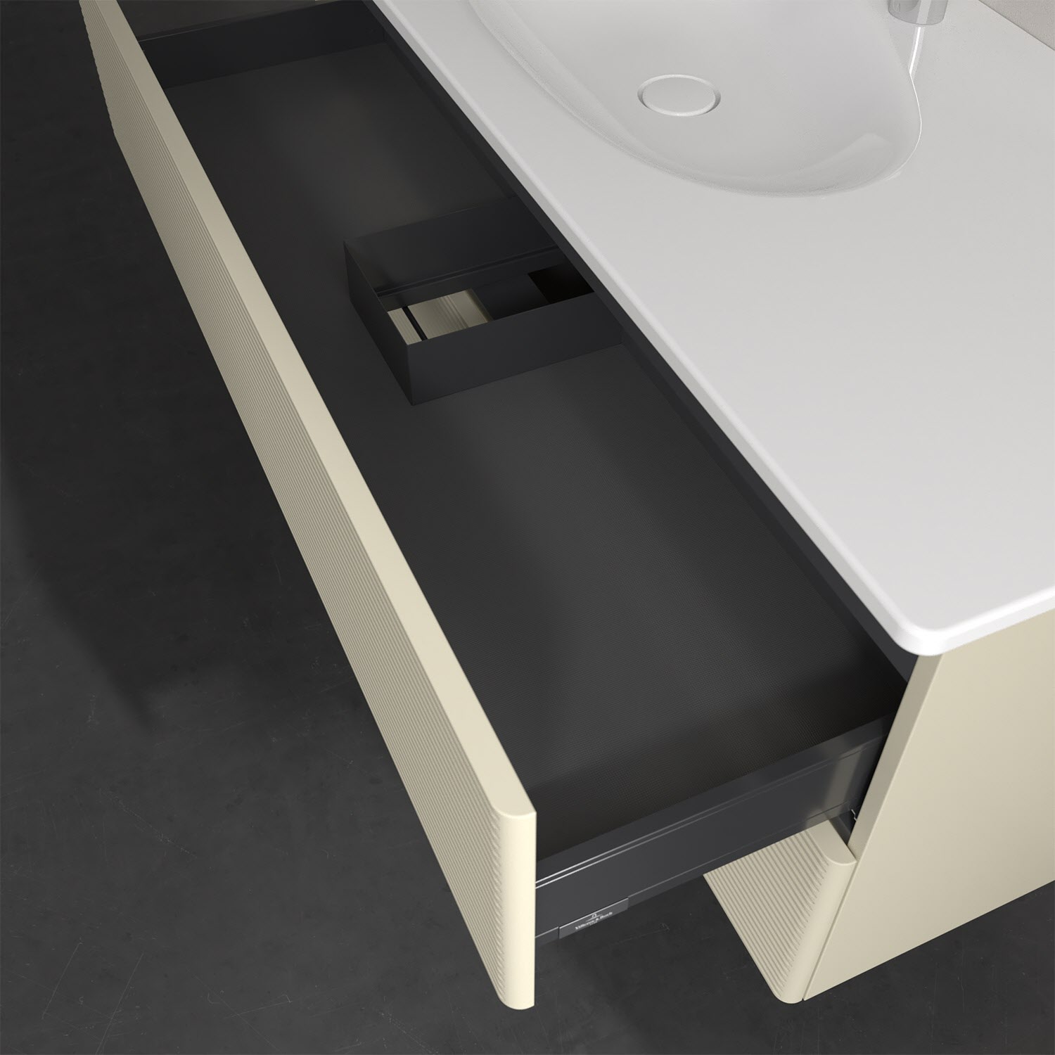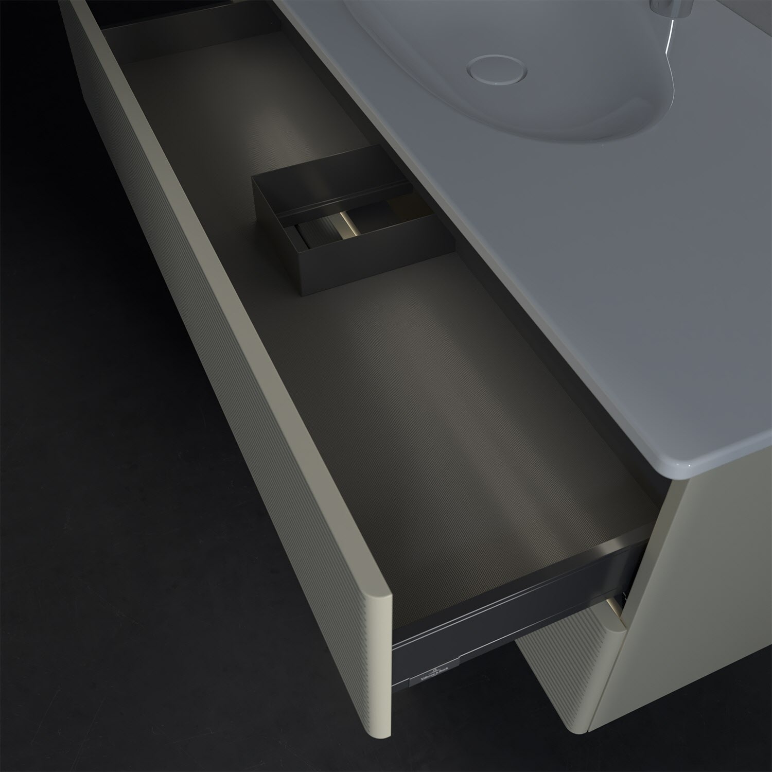 - kein Umfallen oder Verrutschen von Pflegeprodukten in den Schubladen dank rutschhemmendem Boden