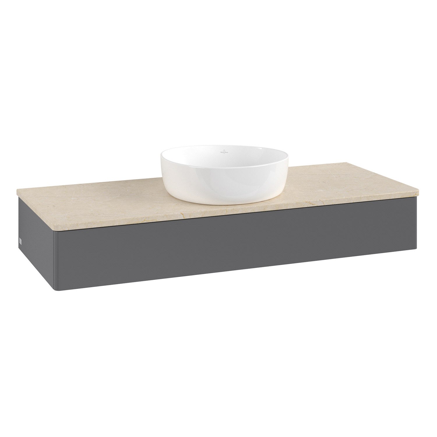 Villeroy & Boch Antao Waschbeckenunterschrank, 120 x 19 cm, 1 Auszug, Front ohne Struktur, ohne Hahnloch, für Waschtisch mittig