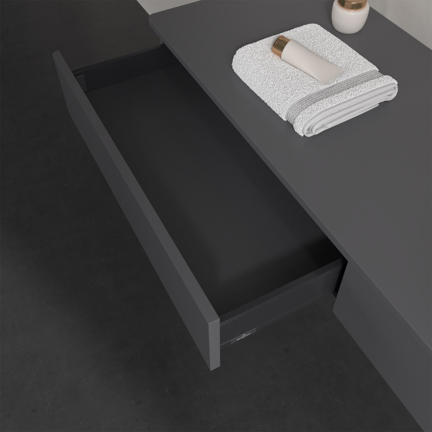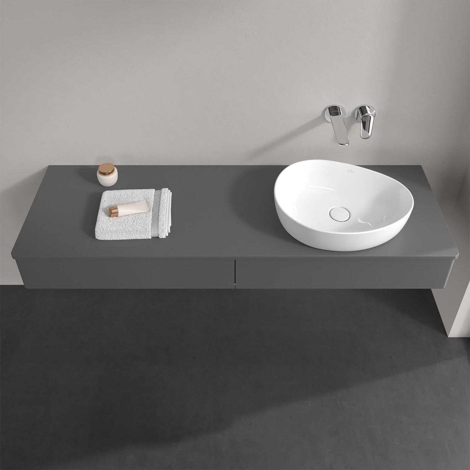 Villeroy & Boch Antao Waschbeckenunterschrank, 160 x 19 cm, 2 Auszüge, Front ohne Struktur, ohne Hahnloch, für Waschtisch rechts
