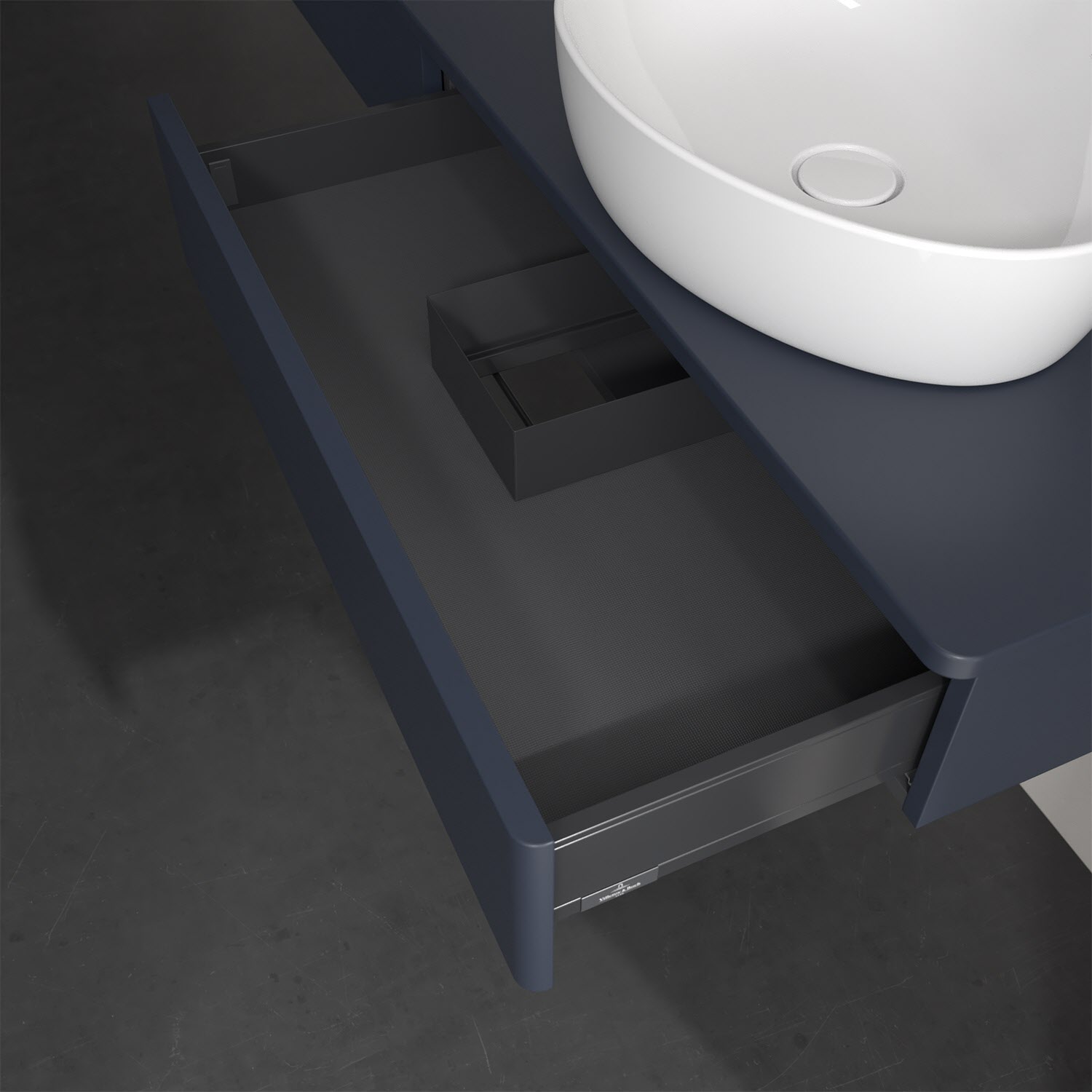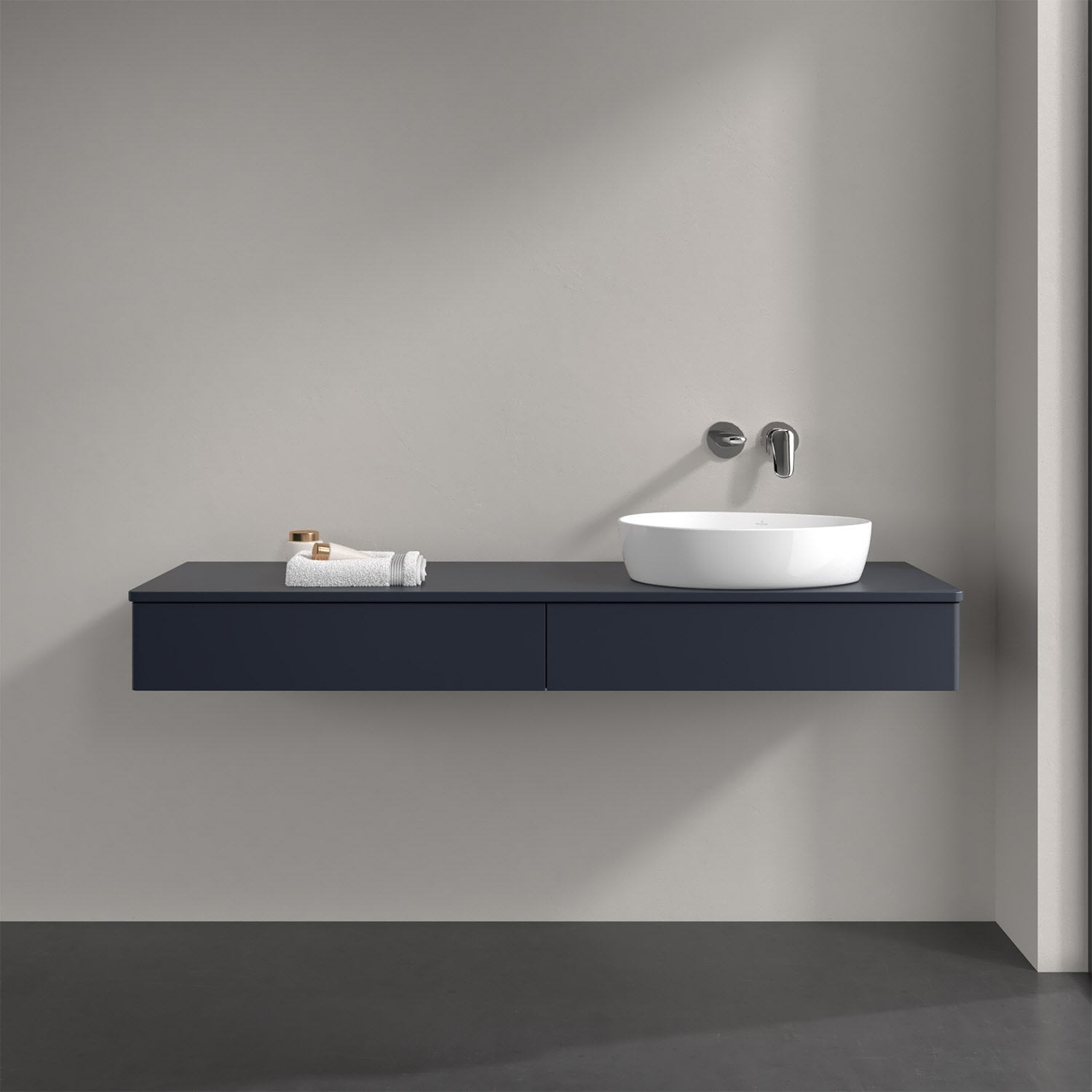 Villeroy & Boch Antao Waschbeckenunterschrank, 160 x 19 cm, 2 Auszüge, Front ohne Struktur, ohne Hahnloch, für Waschtisch rechts