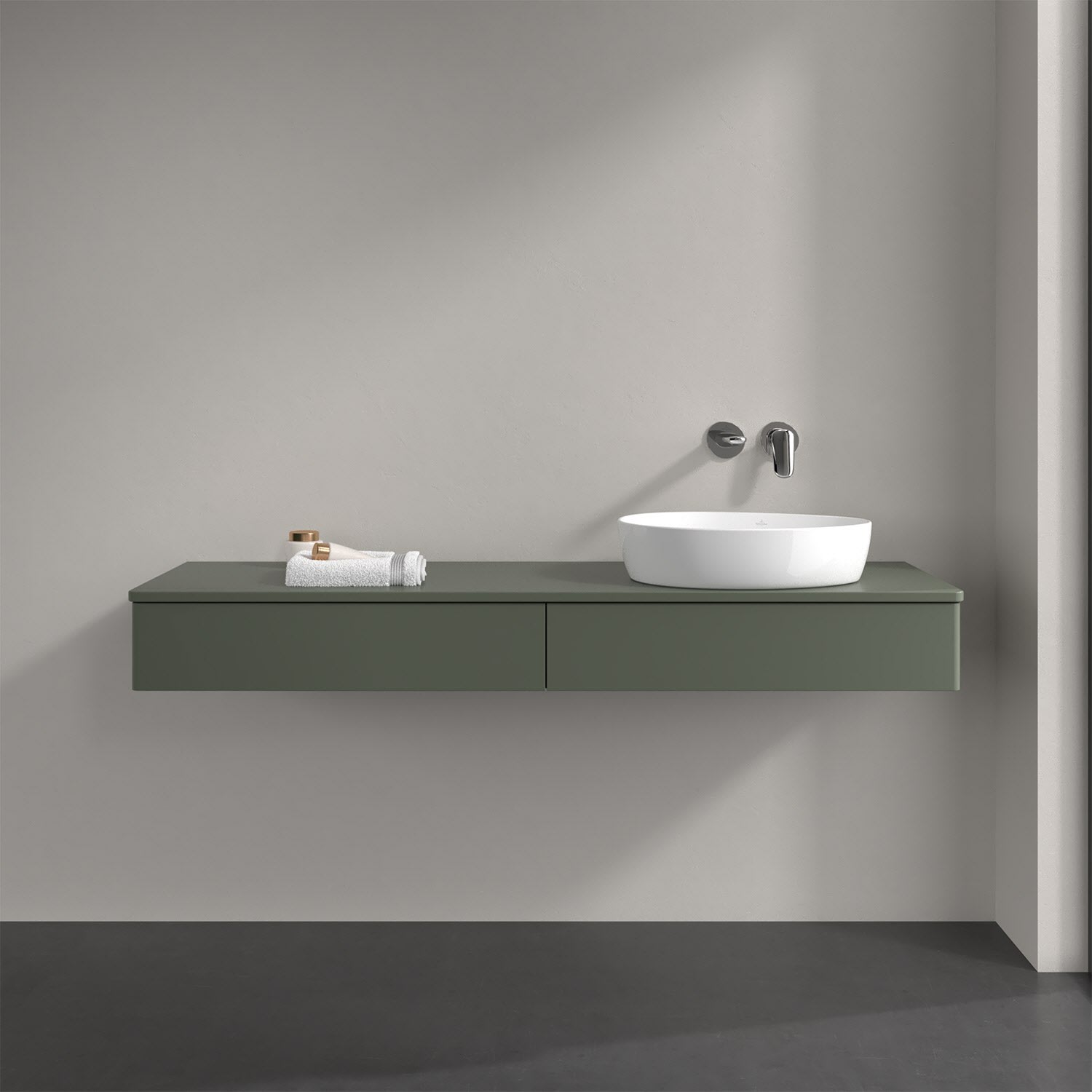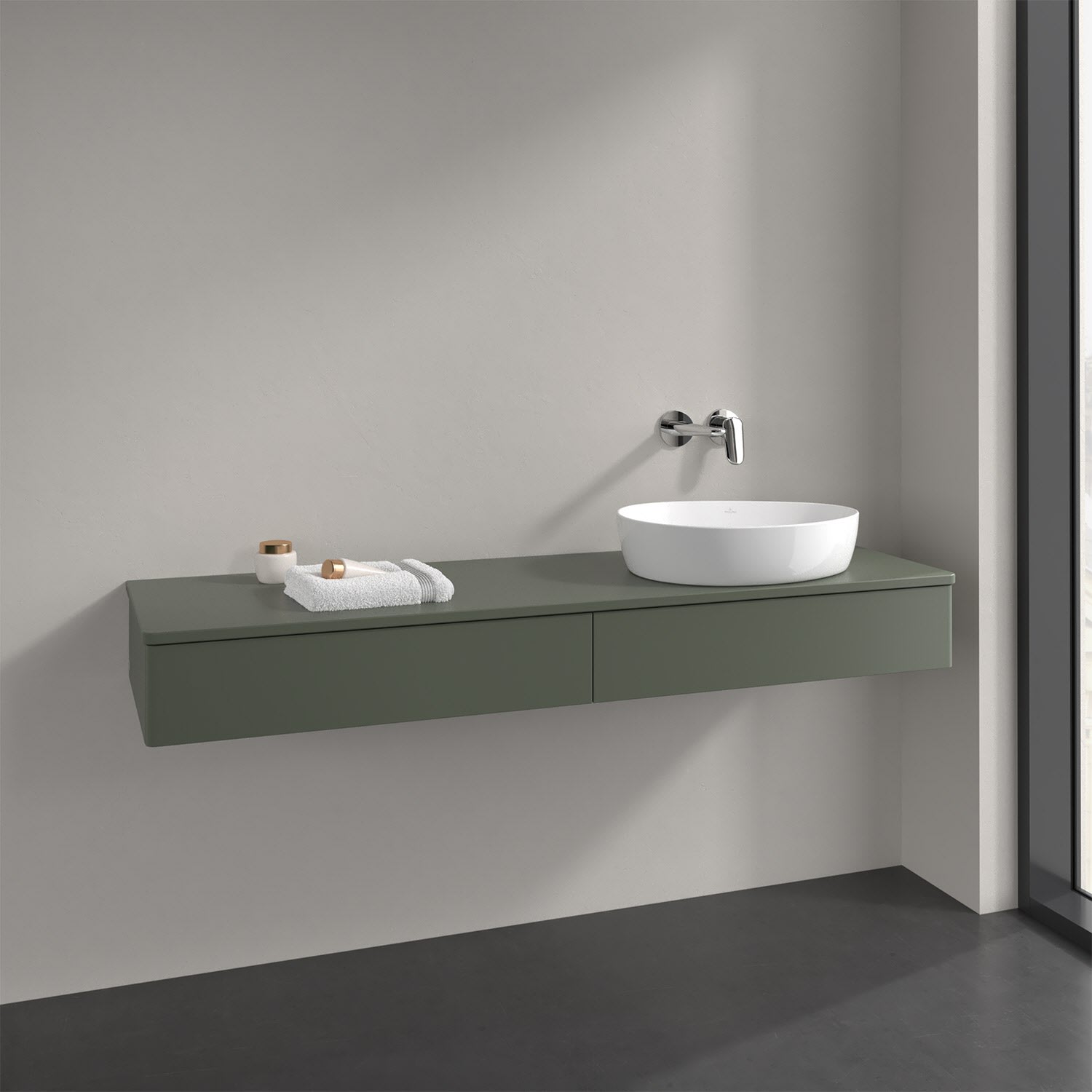 Villeroy & Boch Antao Waschbeckenunterschrank, 160 x 19 cm, 2 Auszüge, Front ohne Struktur, ohne Hahnloch, für Waschtisch rechts