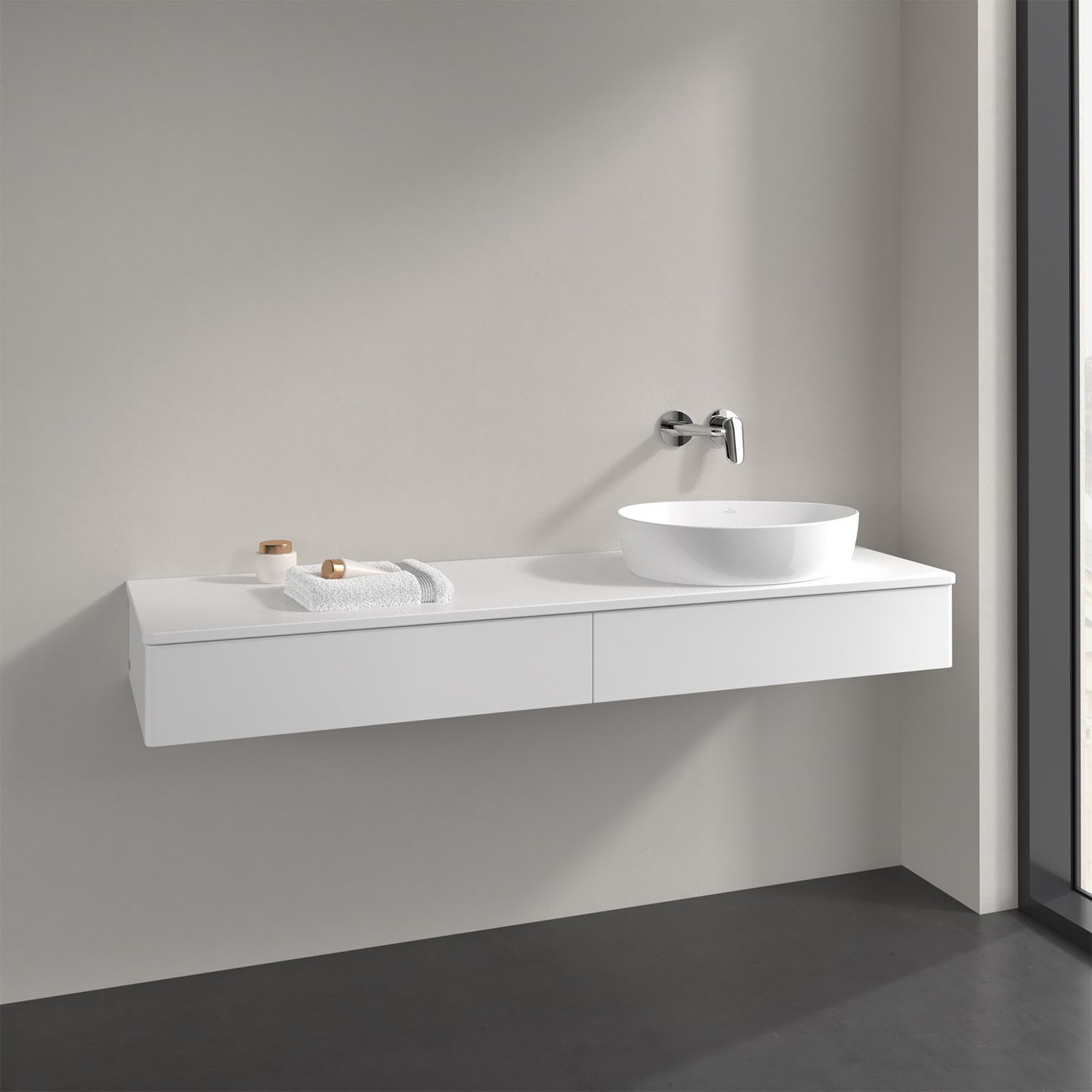 Villeroy & Boch Antao Waschbeckenunterschrank, 160 x 19 cm, 2 Auszüge, Front ohne Struktur, ohne Hahnloch, für Waschtisch rechts
