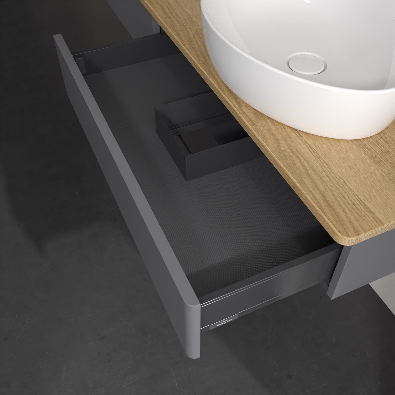 Villeroy & Boch Antao Waschbeckenunterschrank, 160 x 19 cm, 2 Auszüge, Front ohne Struktur, ohne Hahnloch, für Waschtisch rechts