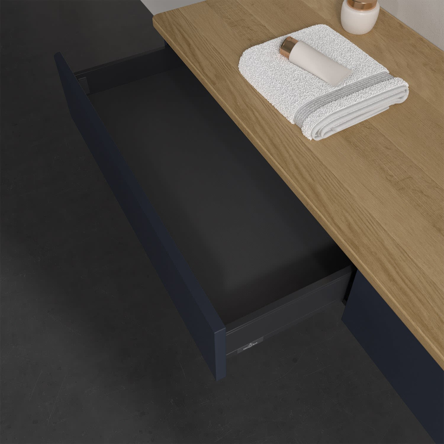 - kein Umfallen oder Verrutschen von Pflegeprodukten in den Schubladen dank rutschhemmendem Boden