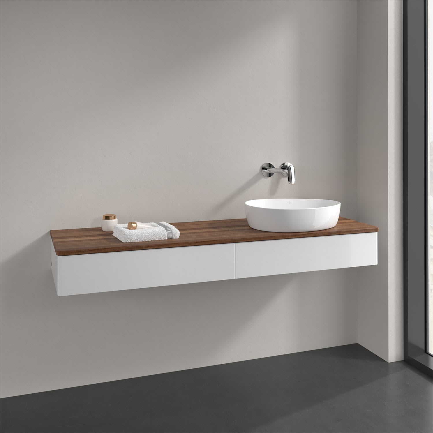 Villeroy & Boch Antao Waschbeckenunterschrank, 160 x 19 cm, 2 Auszüge, Front ohne Struktur, ohne Hahnloch, für Waschtisch rechts