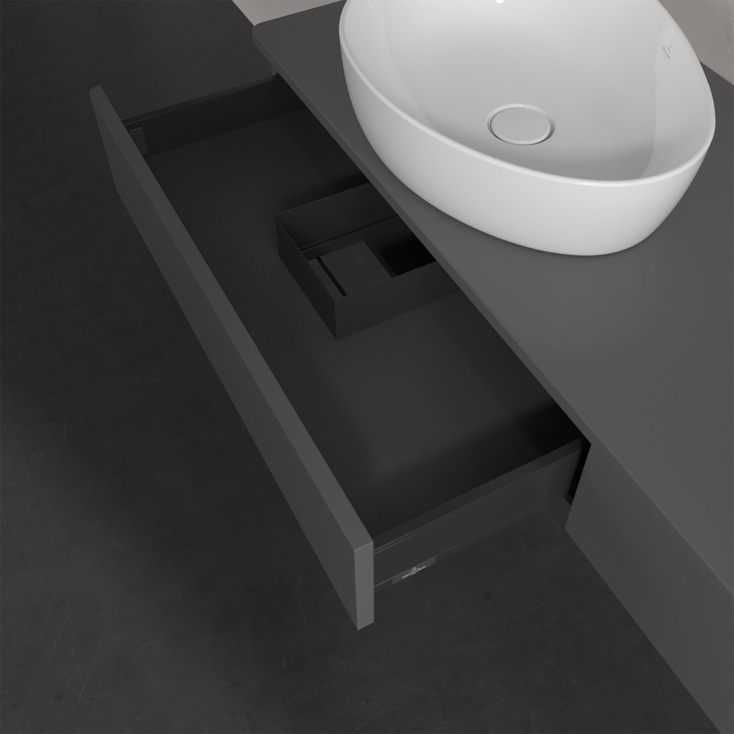 Villeroy & Boch Antao Waschbeckenunterschrank, 160 x 19 cm, 2 Auszüge, Front ohne Struktur, ohne Hahnloch, für Waschtisch links und rechts