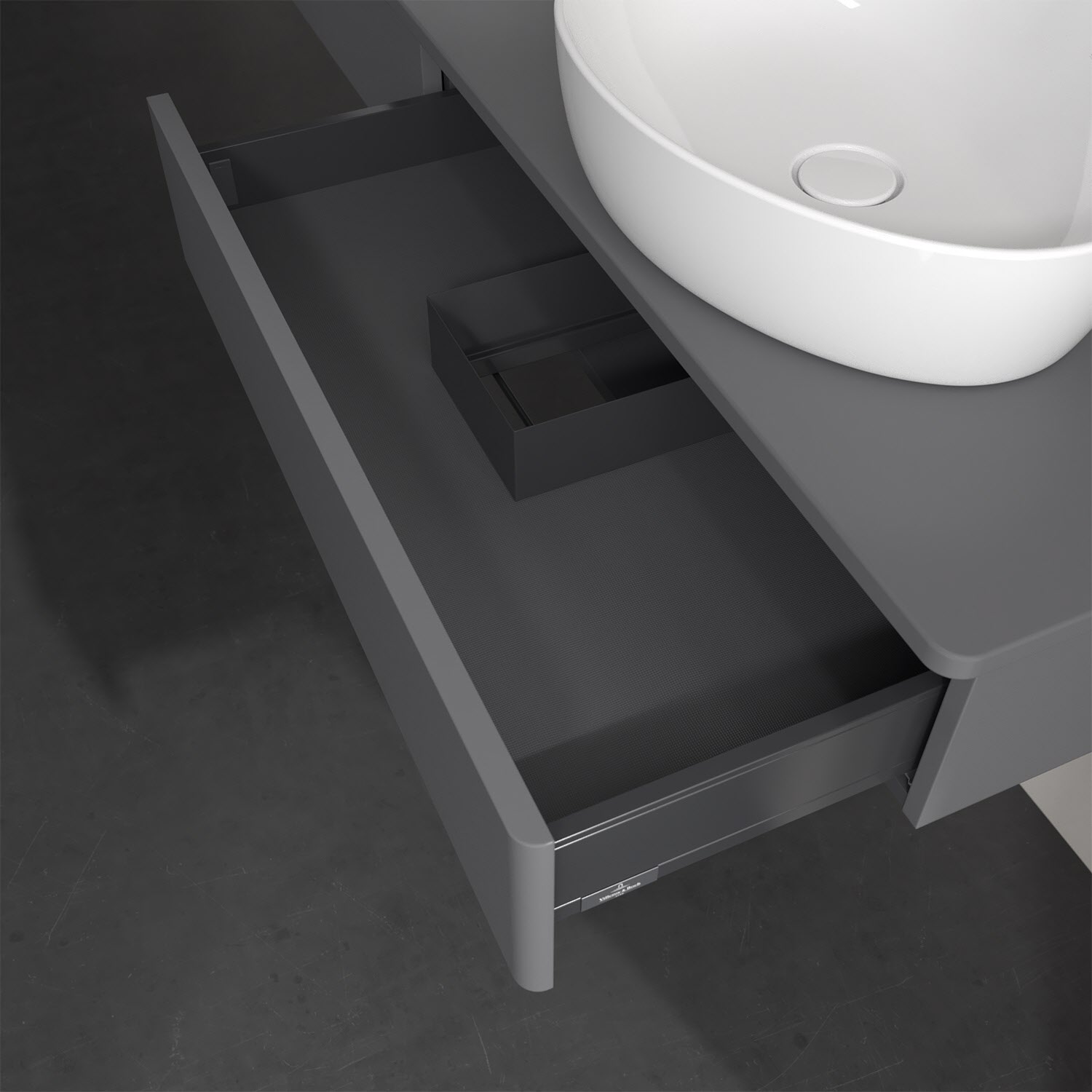 - kein Umfallen oder Verrutschen von Pflegeprodukten in den Schubladen dank rutschhemmendem Boden