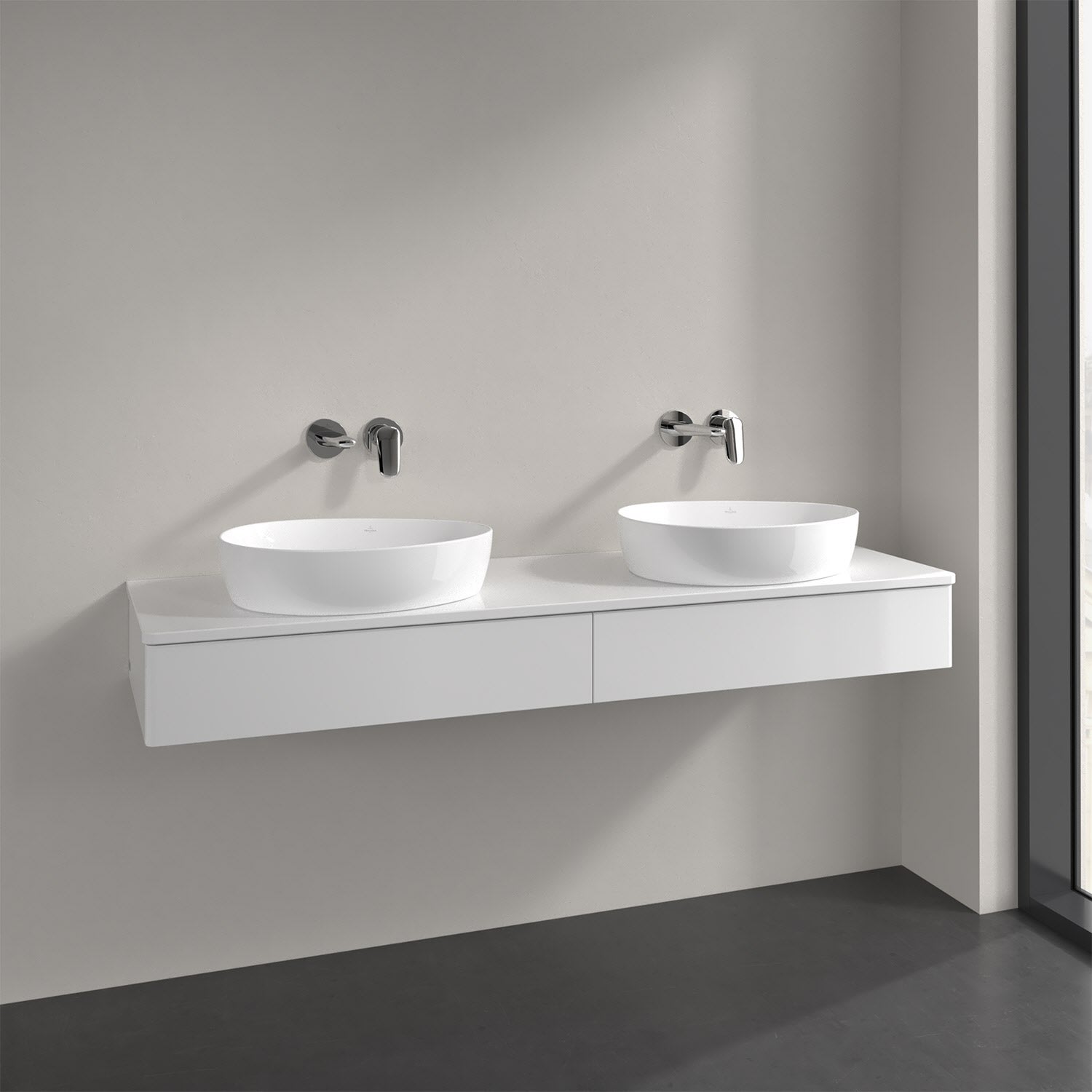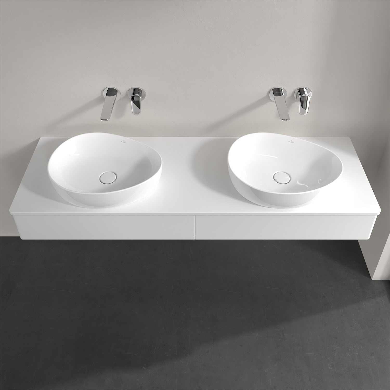 Villeroy & Boch Antao Waschbeckenunterschrank, 160 x 19 cm, 2 Auszüge, Front ohne Struktur, ohne Hahnloch, für Waschtisch links und rechts