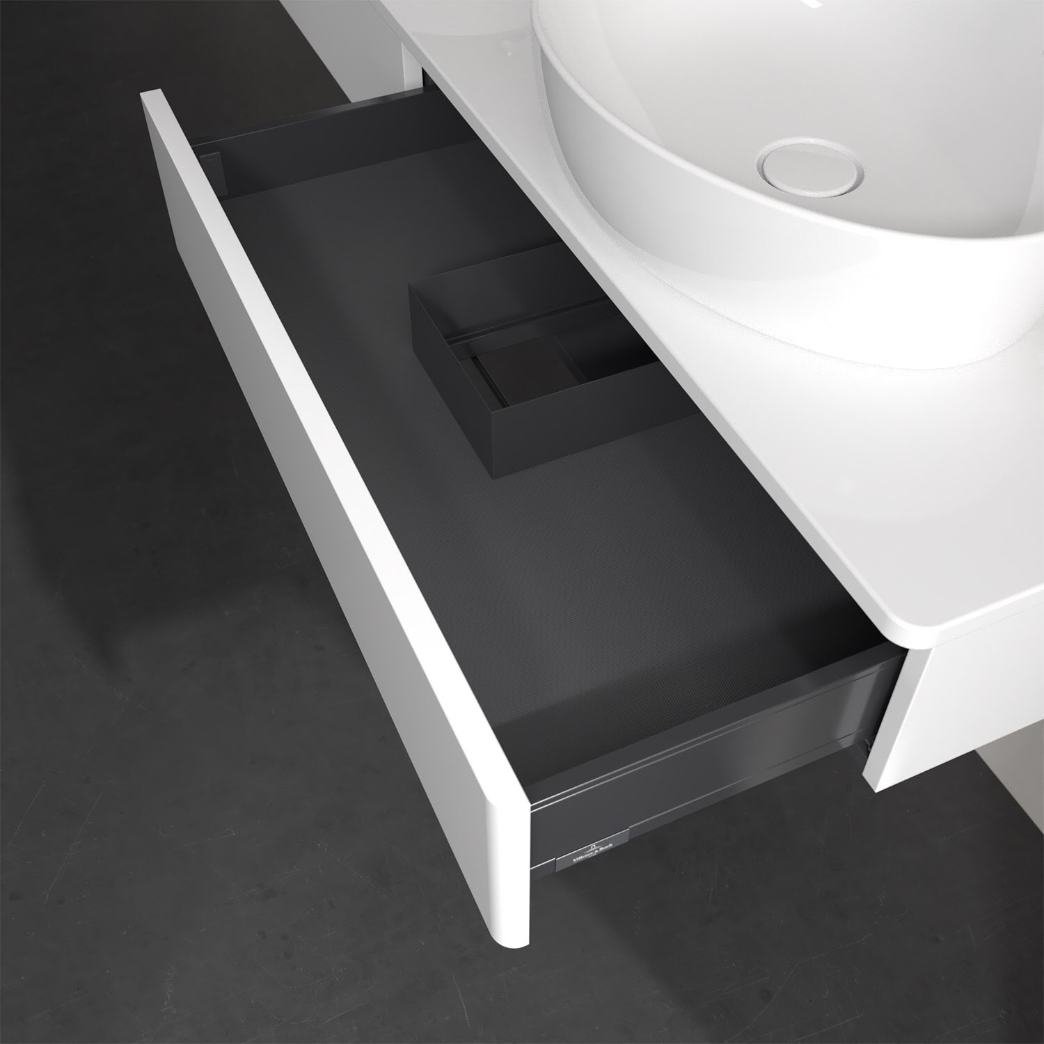 - kein Umfallen oder Verrutschen von Pflegeprodukten in den Schubladen dank rutschhemmendem Boden