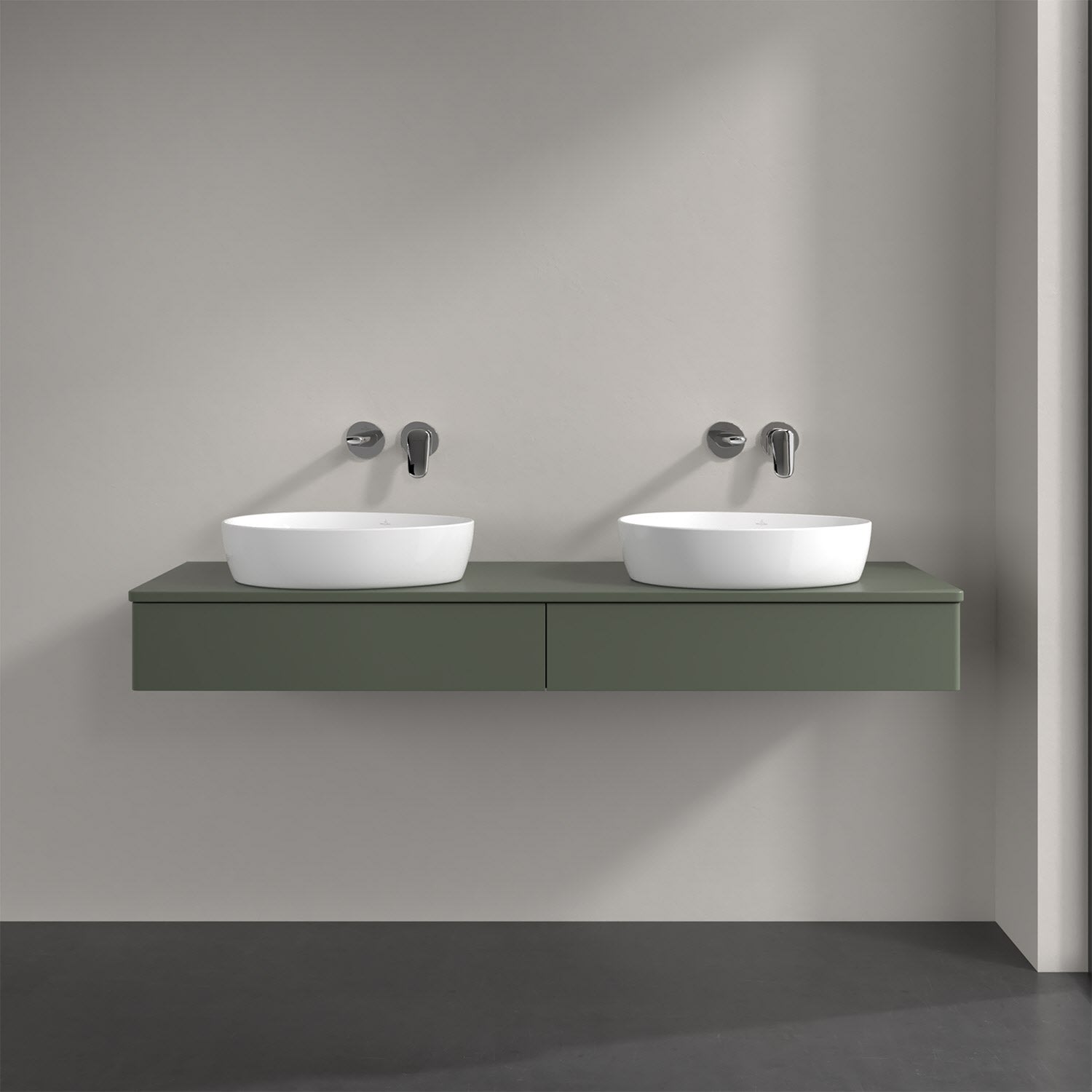 Villeroy & Boch Antao Waschbeckenunterschrank, 160 x 19 cm, 2 Auszüge, Front ohne Struktur, ohne Hahnloch, für Waschtisch links und rechts