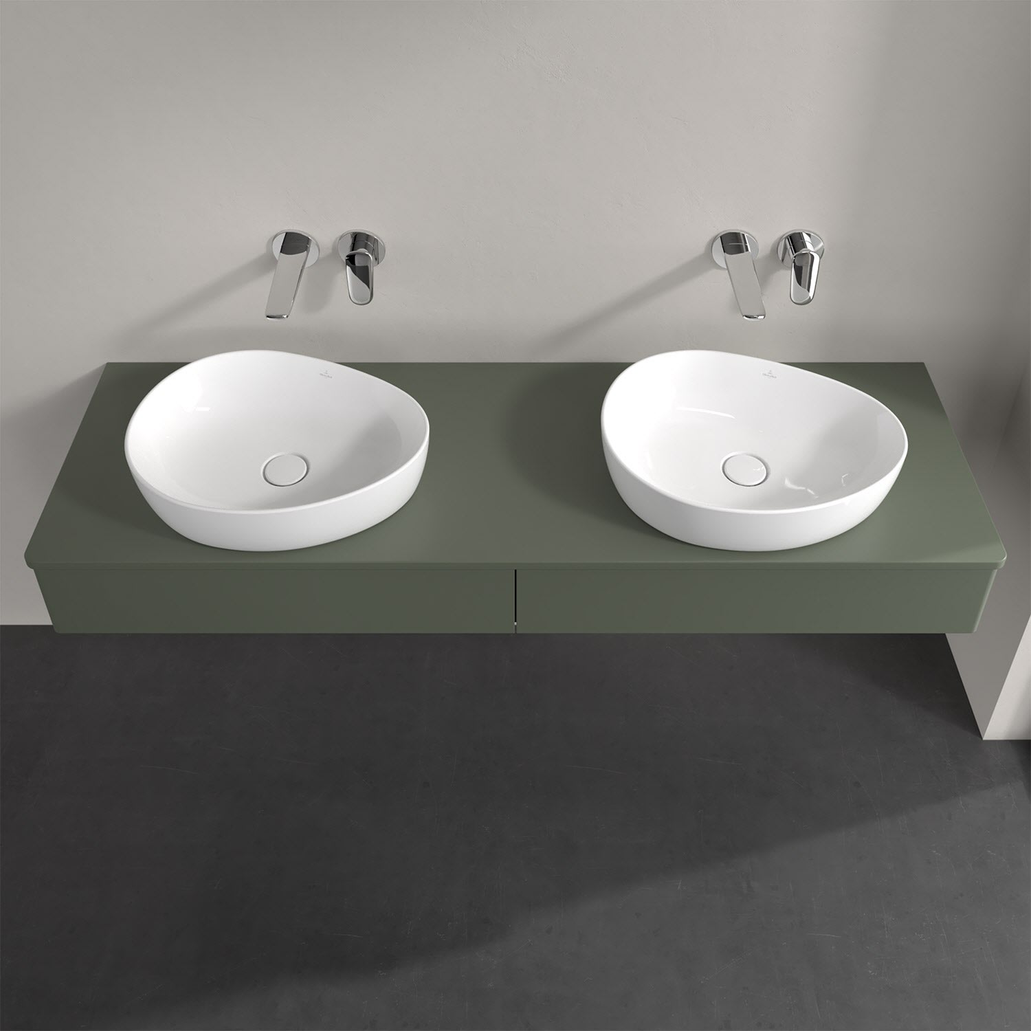 Für diesen Waschbeckenunterschrank stehen Ihnen Aufsatzwaschtische aus verschiedenen Serien zur Verfügung (siehe "Passliste" unter Downloads). Ein ausgewähltes Beispiel finden Sie im Zubehör. Den Waschtisch bitte separat mitbestellen.