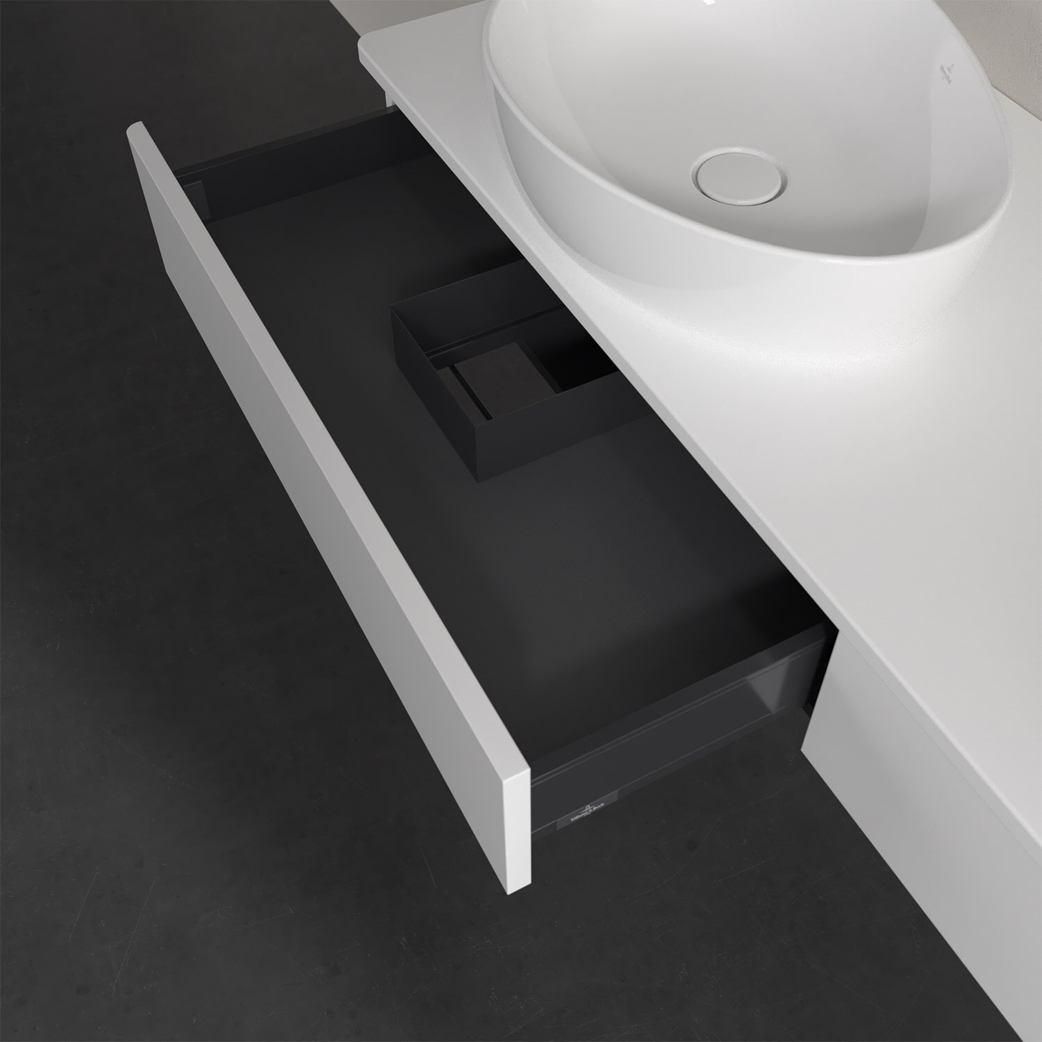 Villeroy & Boch Antao Waschbeckenunterschrank, 160 x 19 cm, 2 Auszüge, Front ohne Struktur, ohne Hahnloch, für Waschtisch links und rechts