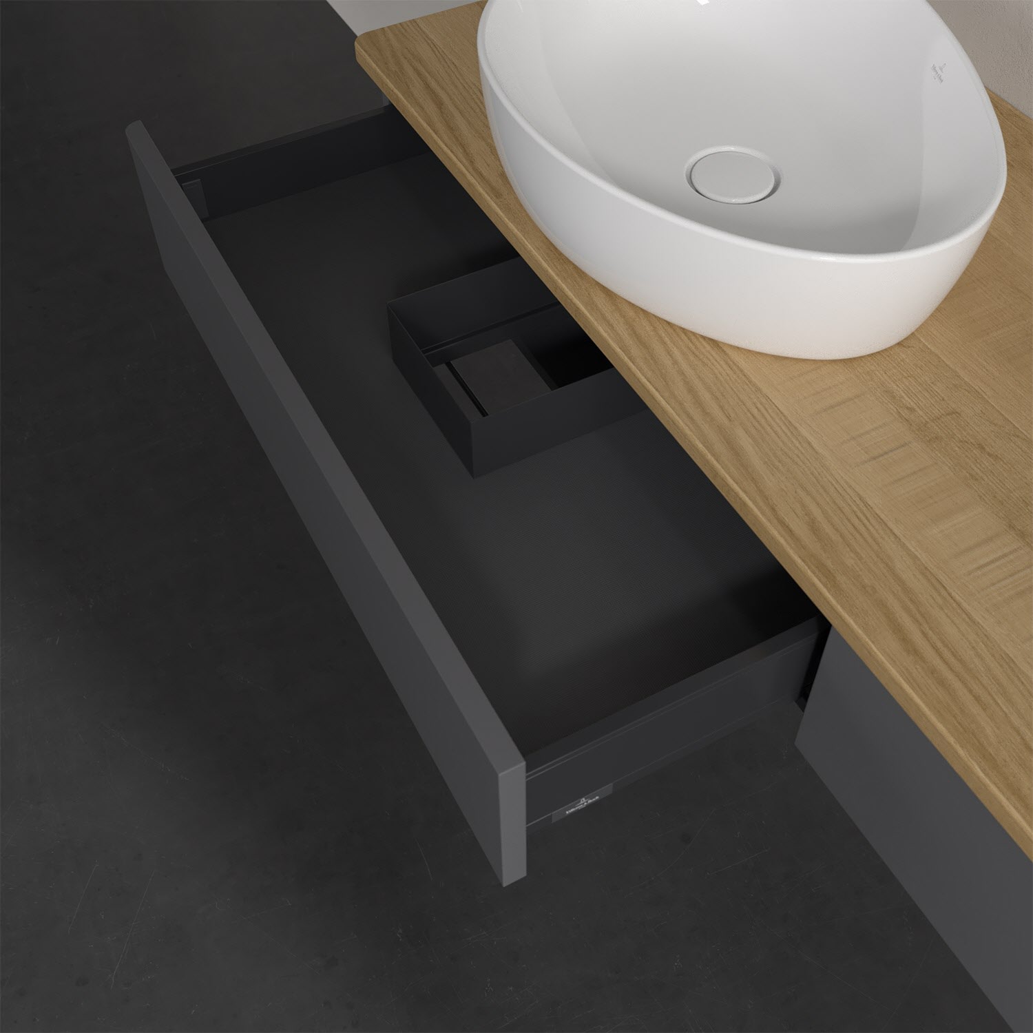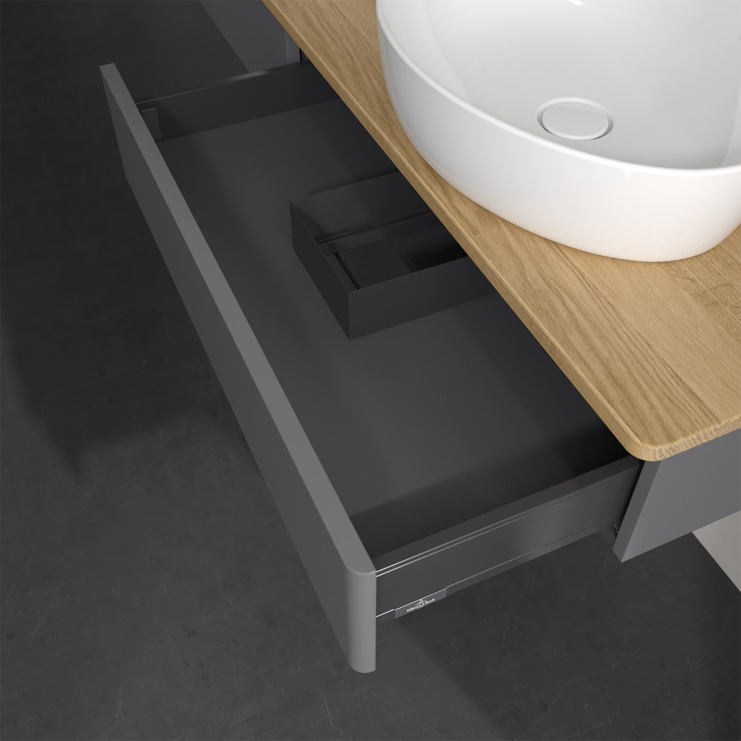 Villeroy & Boch Antao Waschbeckenunterschrank, 160 x 19 cm, 2 Auszüge, Front ohne Struktur, ohne Hahnloch, für Waschtisch links und rechts
