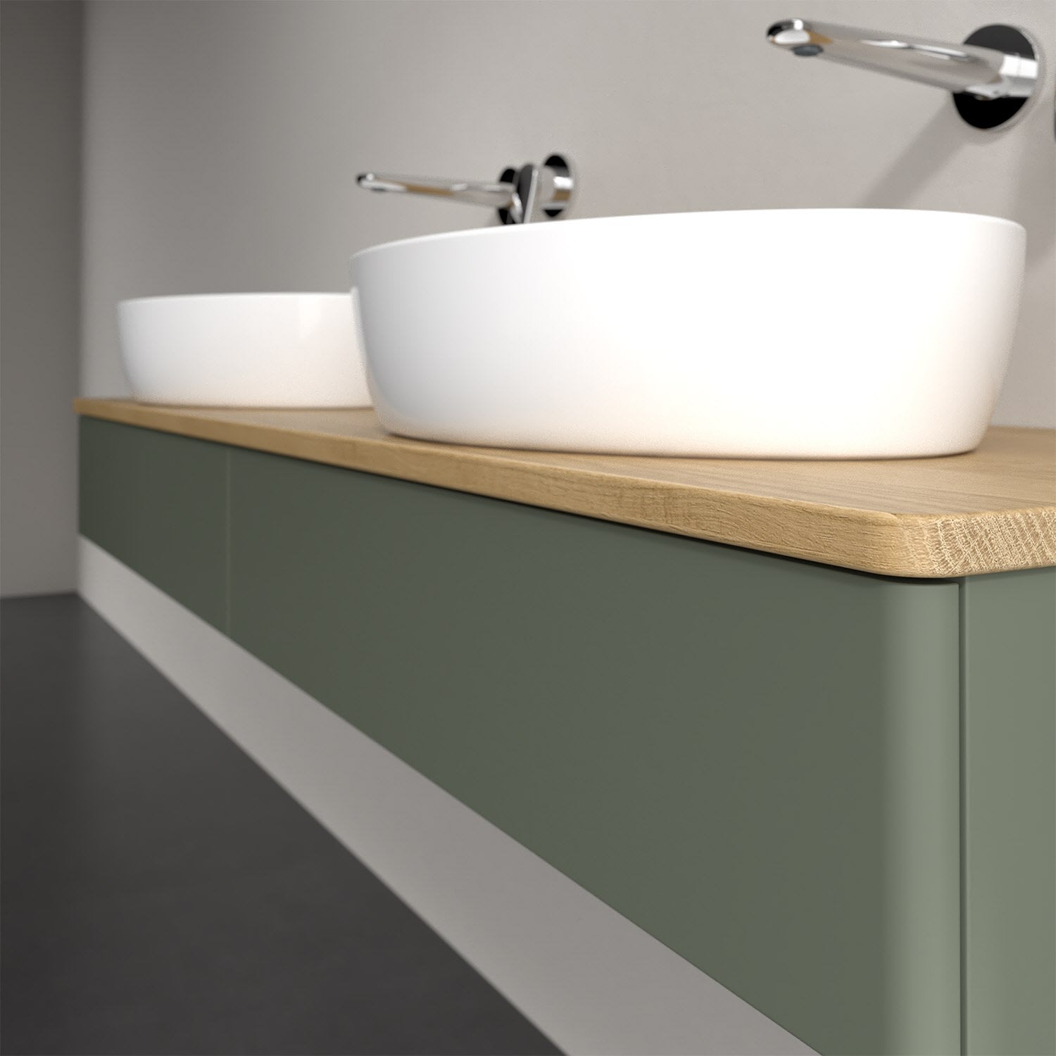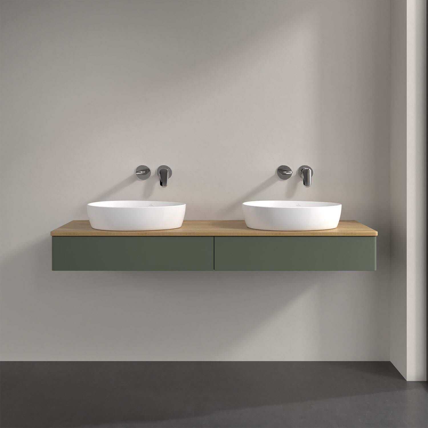 Der wandhängende Antao Waschtischunterschrank von Villeroy & Boch bietet nicht nur jede Menge Stauraum – er ist dank seines naturinspirierten Designs mit seinen abgerundeten Kanten auch noch besonders stilvoll und schafft eine gemütliche Atmosphäre im Badezimmer. Kombiniert mit zwei passenden Aufsatzwaschtischen also die ideale Wahl. Der geräumige Auszug bietet viel Platz, um alles Notwendige zu verstauen und Ordnung zu halten. Öffnen lässt er sich durch leichten Druck auf die grifflose Front. Dank Vollauszug hat man immer alles im Blick und der Antirutschboden verhindert ein Umfallen oder Verrutschen der Gegenstände. Einfach clever! Für eine besonders leichte Pflege sorgt die mehrschichtig deckend lackierte Oberfläche. Bei der Ausführung in Massivholz wird dank des verarbeiteten Massivholzes jedes Möbel zu einem Unikat, das sich durch das lebendige Naturmaterial durch seine einzigartige Struktur und Maserung auszeichnet.