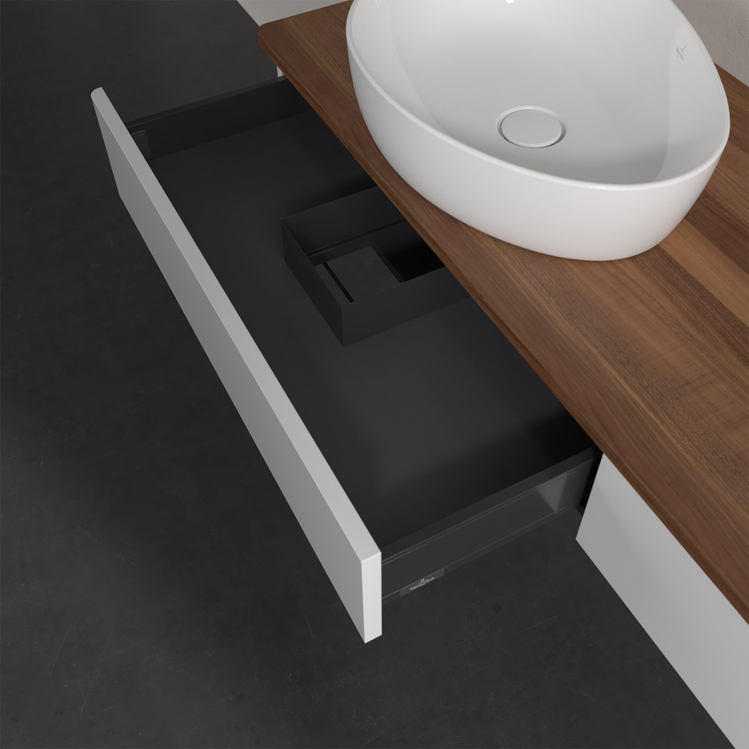 Für diesen Waschbeckenunterschrank stehen Ihnen Aufsatzwaschtische aus verschiedenen Serien zur Verfügung (siehe "Passliste" unter Downloads). Ein ausgewähltes Beispiel finden Sie im Zubehör. Den Waschtisch bitte separat mitbestellen.