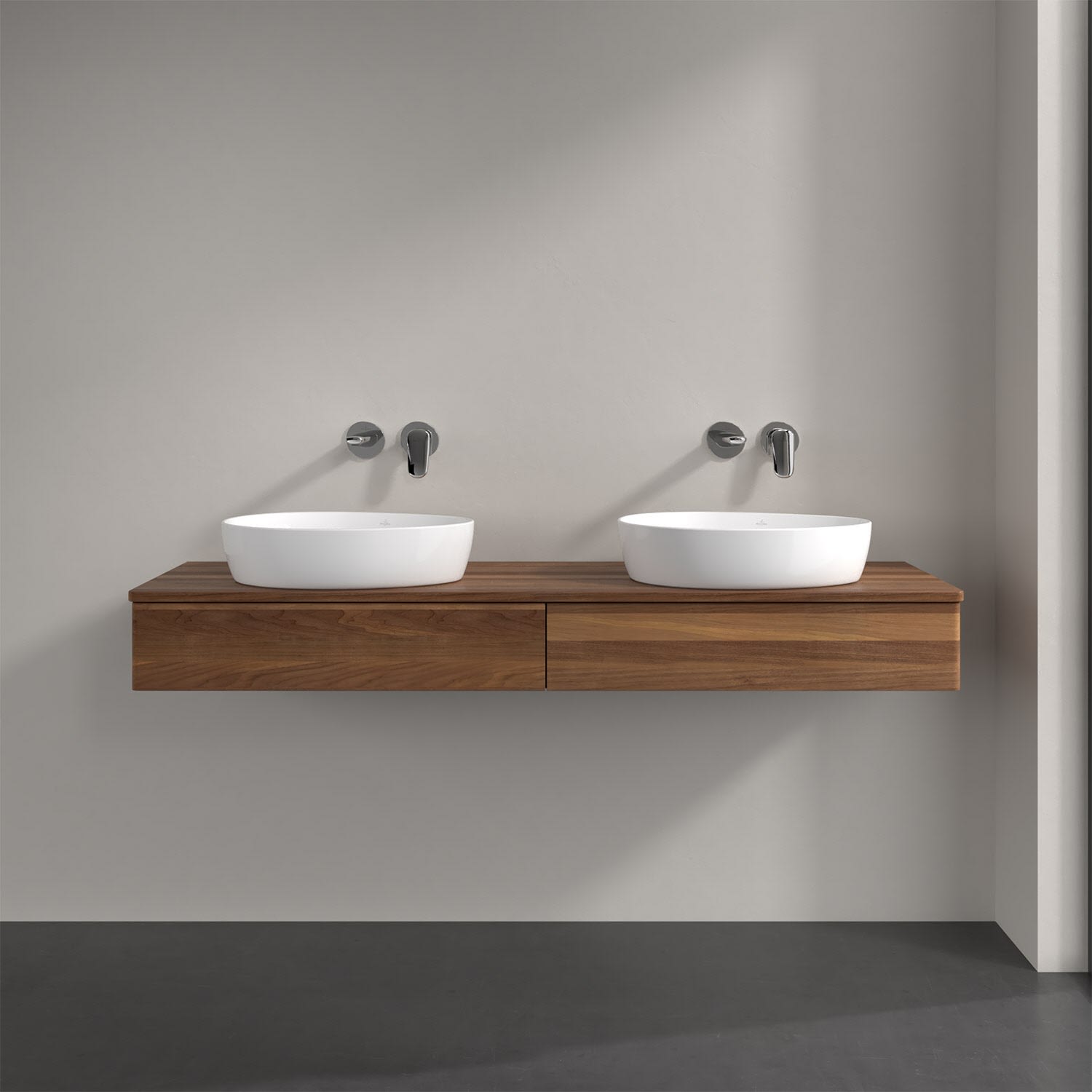 Villeroy & Boch Antao Waschbeckenunterschrank, 160 x 19 cm, 2 Auszüge, Front ohne Struktur, ohne Hahnloch, für Waschtisch links und rechts