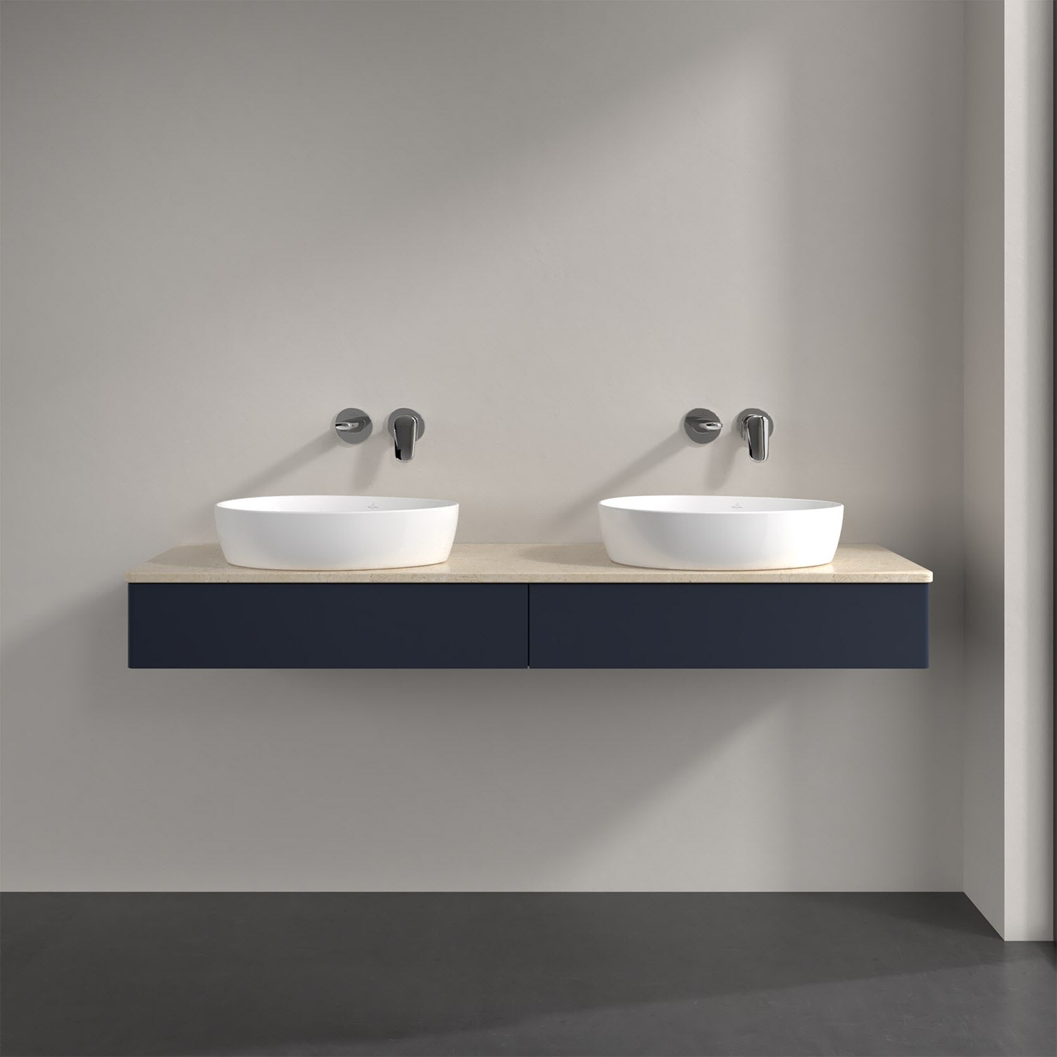 Villeroy & Boch Antao Waschbeckenunterschrank, 160 x 19 cm, 2 Auszüge, Front ohne Struktur, ohne Hahnloch, für Waschtisch links und rechts
