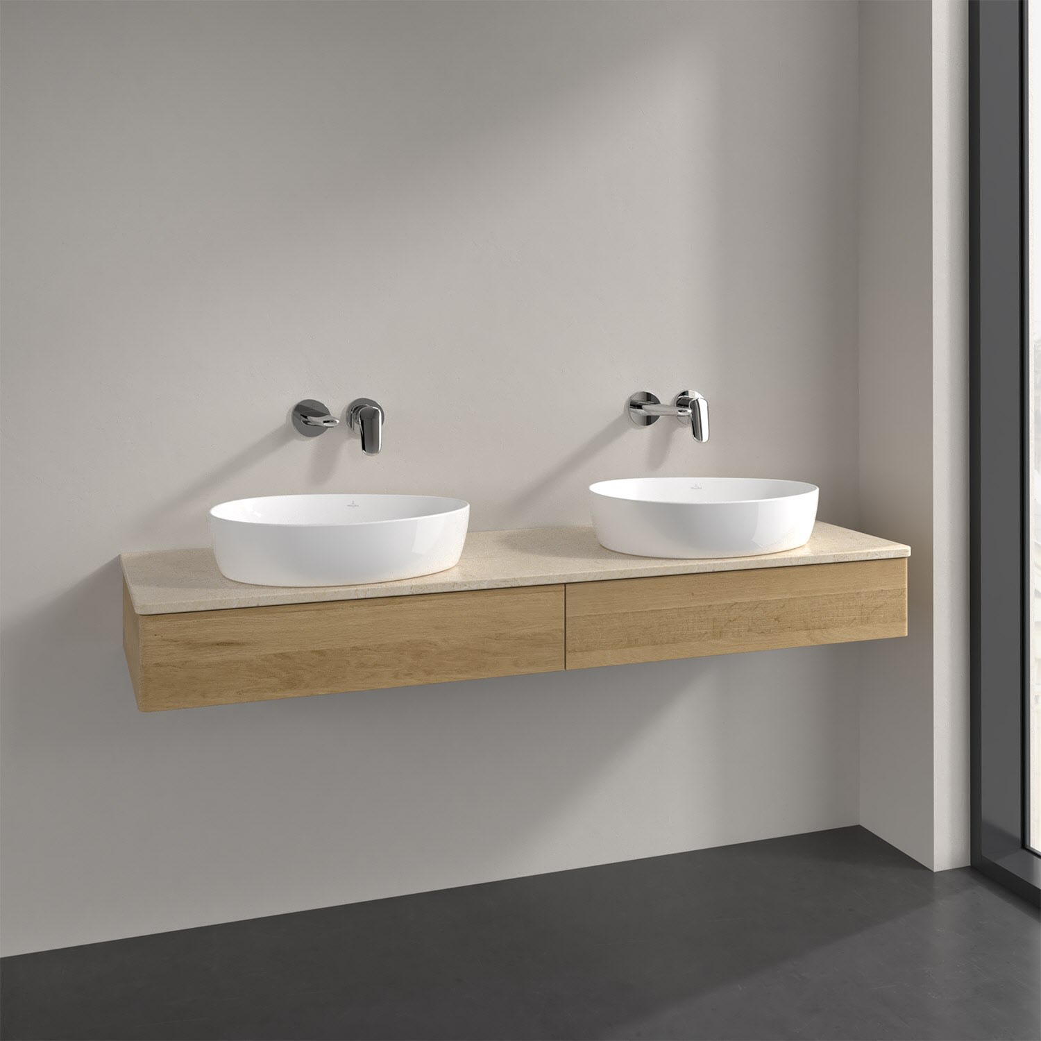 Villeroy & Boch Antao Waschbeckenunterschrank, 160 x 19 cm, 2 Auszüge, Front ohne Struktur, ohne Hahnloch, für Waschtisch links und rechts