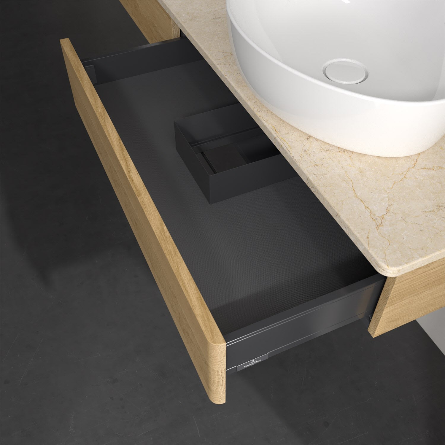 - kein Umfallen oder Verrutschen von Pflegeprodukten in den Schubladen dank rutschhemmendem Boden