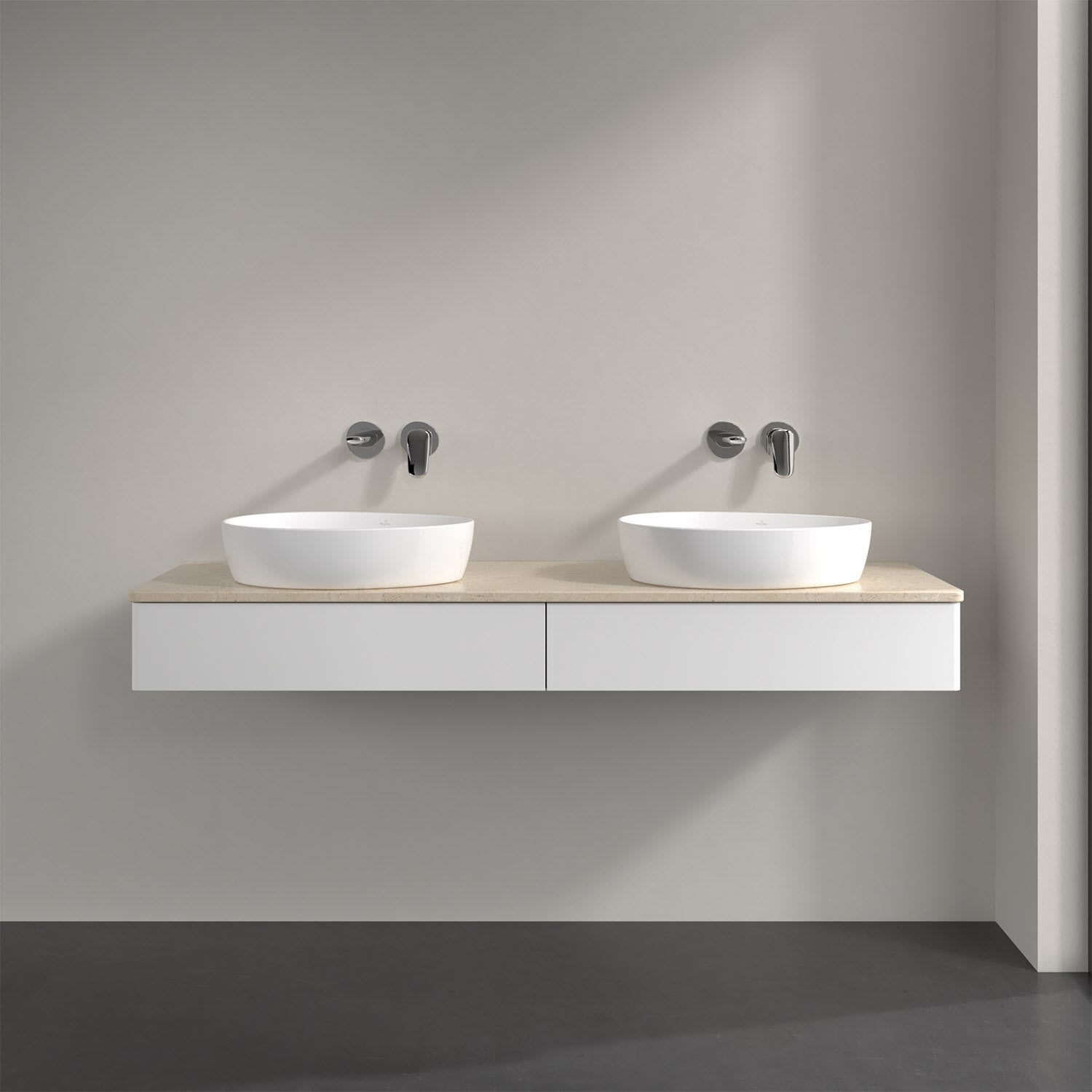 Villeroy & Boch Antao Waschbeckenunterschrank, 160 x 19 cm, 2 Auszüge, Front ohne Struktur, ohne Hahnloch, für Waschtisch links und rechts
