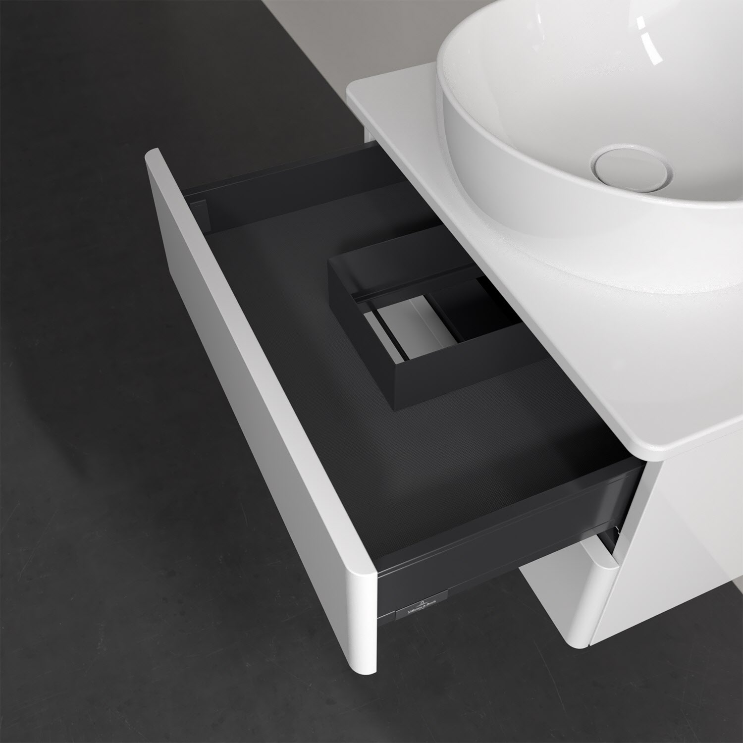 Wenig Platz im Badezimmer und dennoch soll es gemütlich und ordentlich sein? Dann ist der wandhängende Antao Waschtischunterschrank mit seinen sanft abgerundeten Kanten die ideale Lösung. Das geräumige Möbel bietet ausreichend Stauraum für alle nötigen Badutensilien. Zum Öffnen genügt dank der Push-to-Open Funktion ein leichter Druck auf die beiden grifflosen Auszüge, die sich dann in ihrer vollen Tiefe öffnen. Das garantiert den benötigen Überblick! Praktisch ist auch der integrierte Antirutschboden und die SoftClosing Funktion, die ein Umfallen oder Verrutschen der verstauten Produkte verhindern. Villeroy & Boch hat alles durchdacht! Für eine besonders leichte Pflege sorgt die mehrschichtig deckend lackierte Oberfläche.
