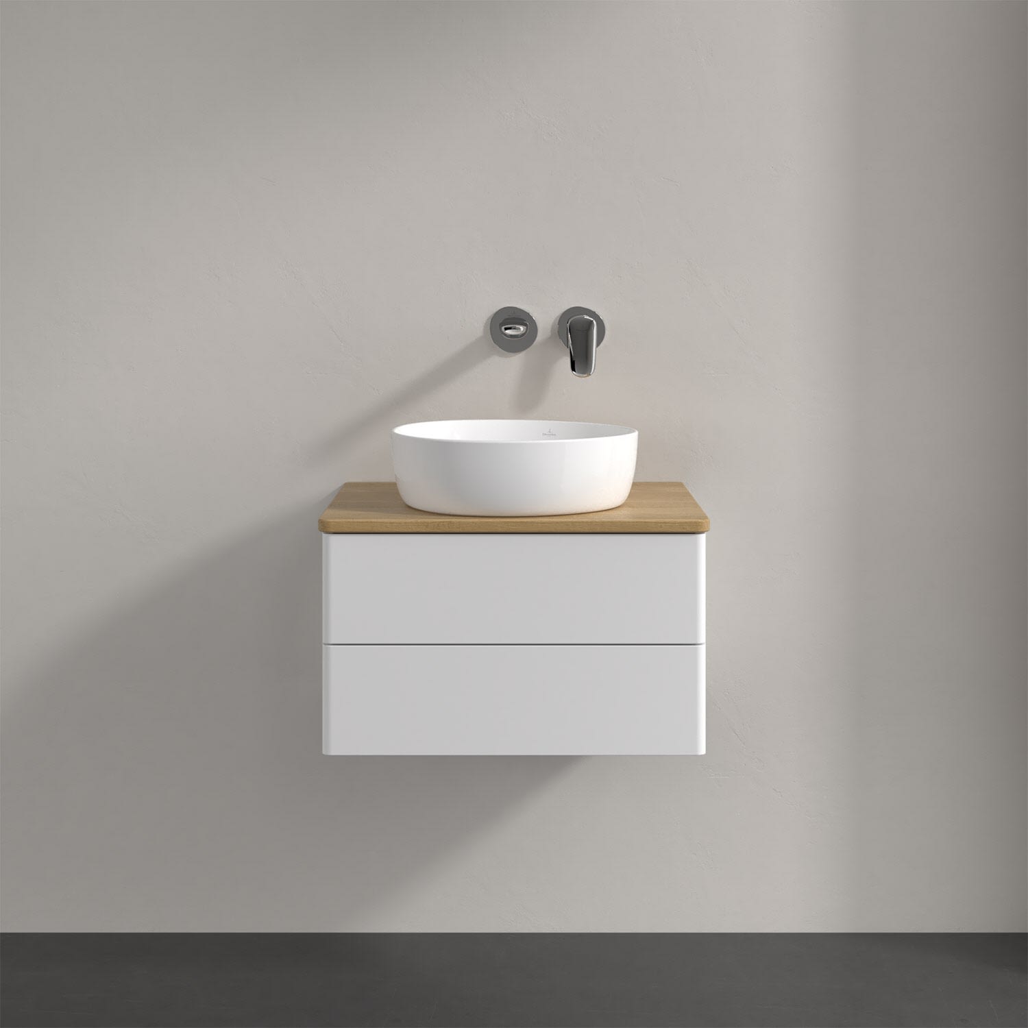 Villeroy & Boch Antao Waschbeckenunterschrank, 60 x 19 cm, 2 Auszüge, Fronten ohne Struktur, ohne Hahnloch