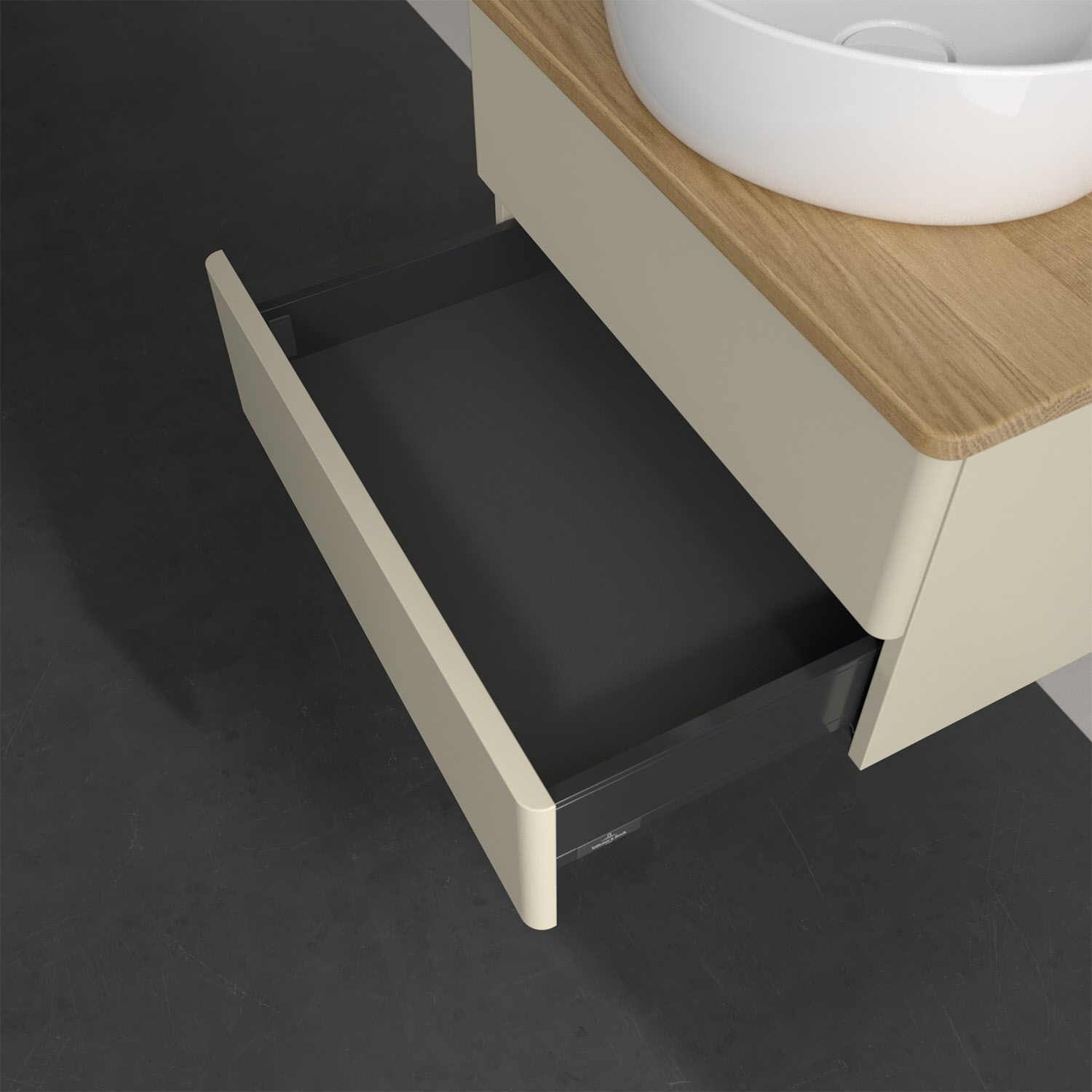 - kein Umfallen oder Verrutschen von Pflegeprodukten in den Schubladen dank rutschhemmendem Boden