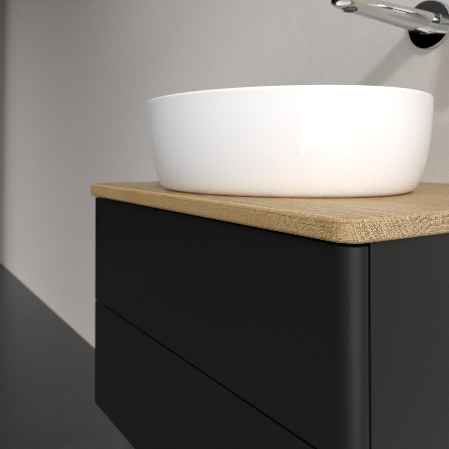 Wenig Platz im Badezimmer und dennoch soll es gemütlich und ordentlich sein? Dann ist der wandhängende Antao Waschtischunterschrank mit seinen sanft abgerundeten Kanten die ideale Lösung. Das geräumige Möbel bietet ausreichend Stauraum für alle nötigen Badutensilien. Zum Öffnen genügt dank der Push-to-Open Funktion ein leichter Druck auf die beiden grifflosen Auszüge, die sich dann in ihrer vollen Tiefe öffnen. Das garantiert den benötigen Überblick! Praktisch ist auch der integrierte Antirutschboden und die SoftClosing Funktion, die ein Umfallen oder Verrutschen der verstauten Produkte verhindern. Villeroy & Boch hat alles durchdacht! Für eine besonders leichte Pflege sorgt die mehrschichtig deckend lackierte Oberfläche. Bei der Ausführung in Massivholz wird dank des verarbeiteten Massivholzes jedes Möbel zu einem Unikat, das sich durch das lebendige Naturmaterial durch seine einzigartige Struktur und Maserung auszeichnet.