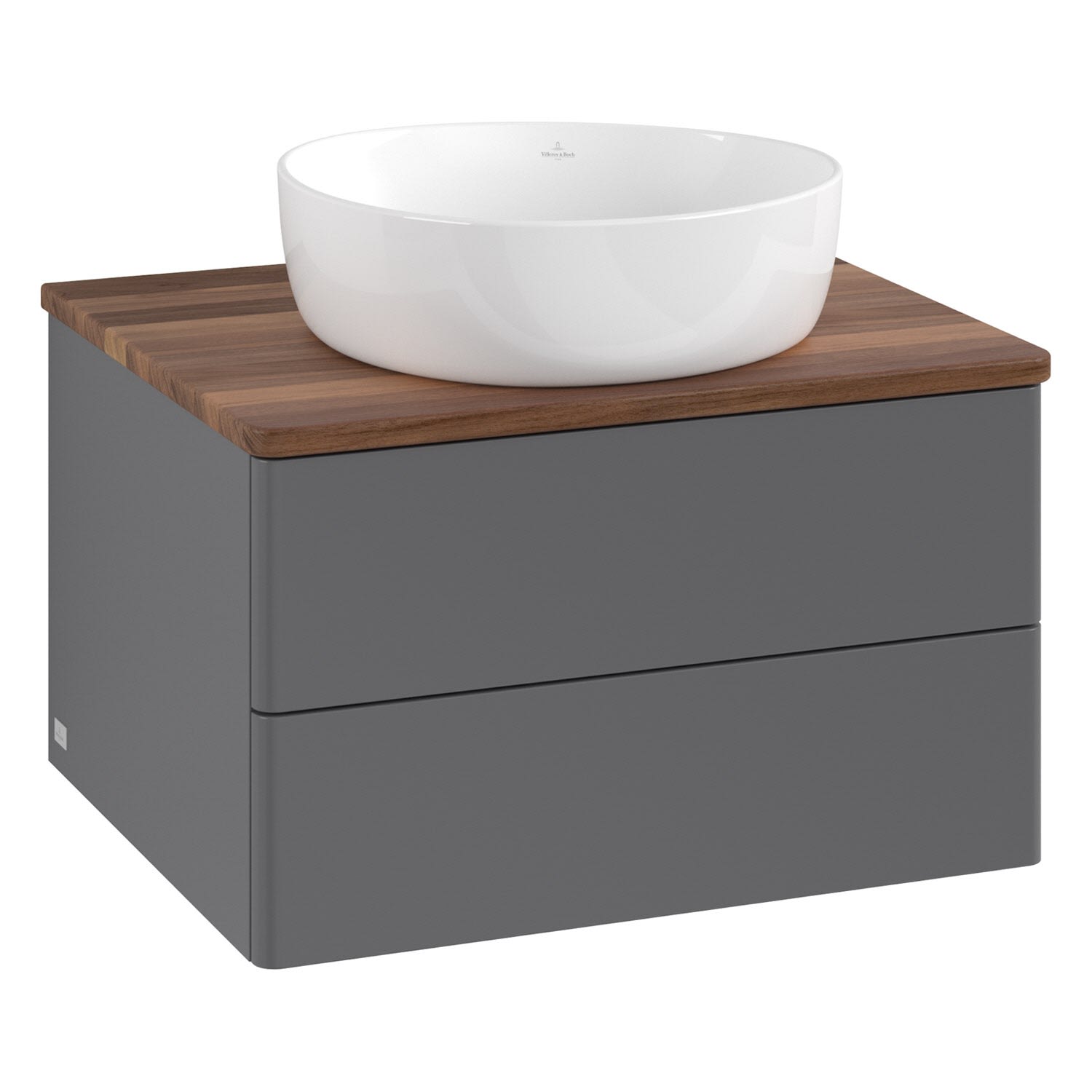 Villeroy & Boch Antao Waschbeckenunterschrank, 60 x 19 cm, 2 Auszüge, Fronten ohne Struktur, ohne Hahnloch