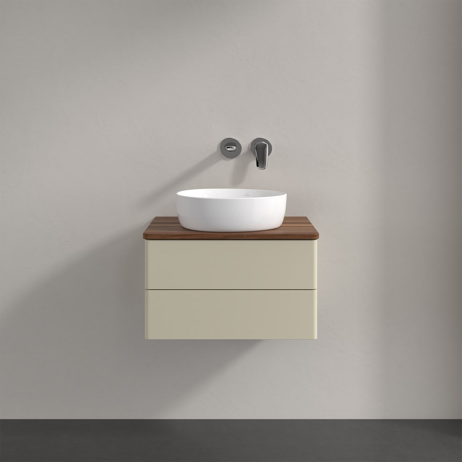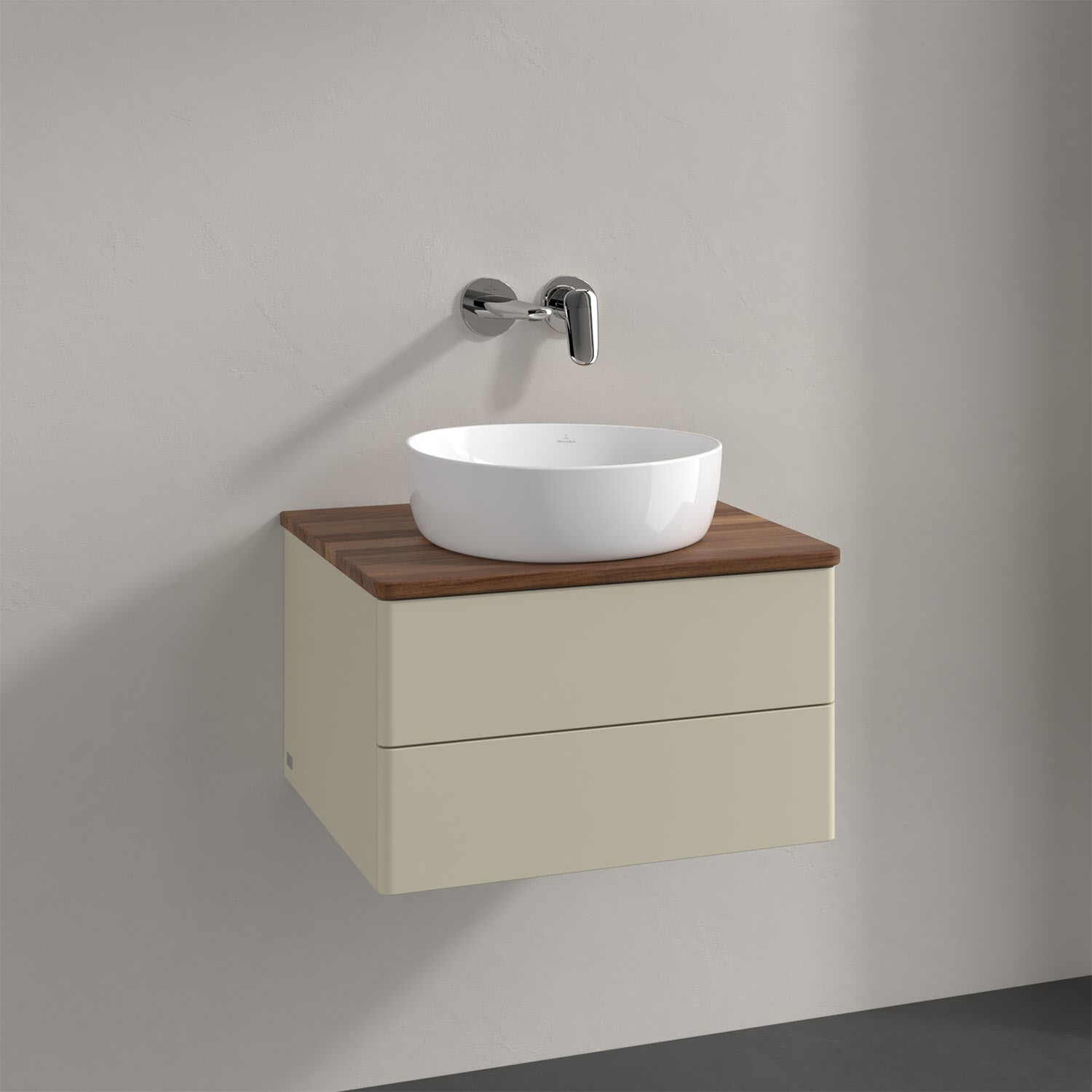 Villeroy & Boch Antao Waschbeckenunterschrank, 60 x 19 cm, 2 Auszüge, Fronten ohne Struktur, ohne Hahnloch