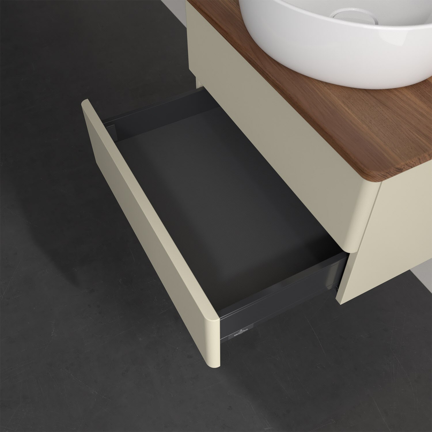 - kein Umfallen oder Verrutschen von Pflegeprodukten in den Schubladen dank rutschhemmendem Boden
