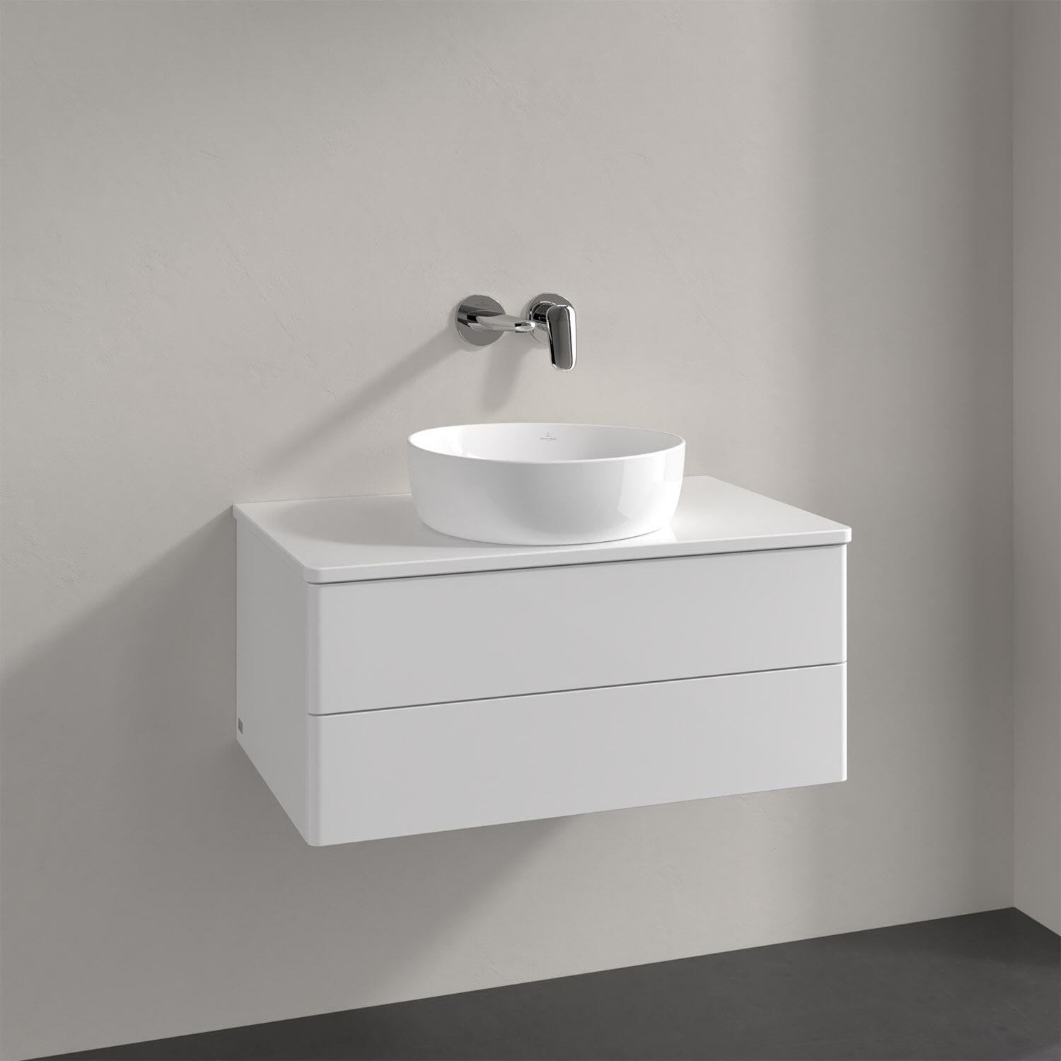 Villeroy & Boch Antao Waschbeckenunterschrank, 80 x 19 cm, 2 Auszüge, Fronten ohne Struktur, ohne Hahnloch