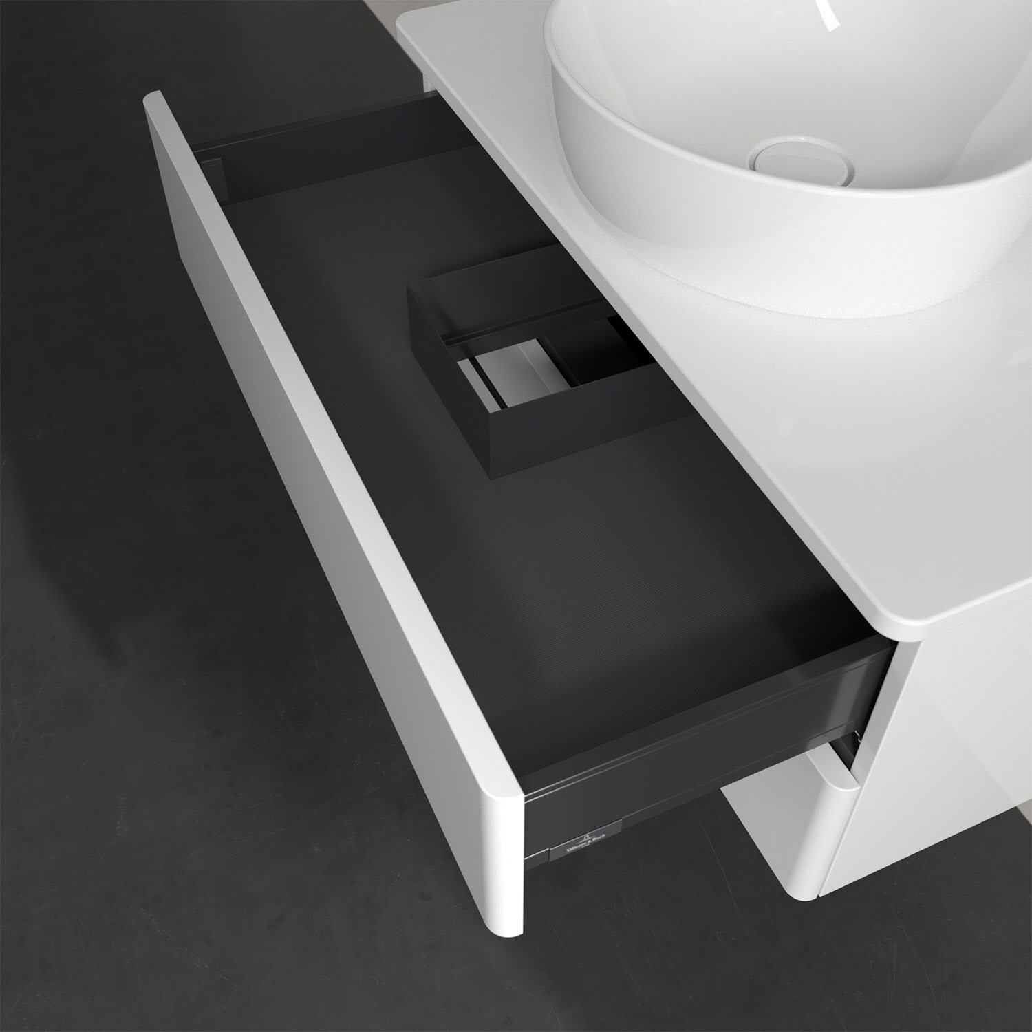 - kein Umfallen oder Verrutschen von Pflegeprodukten in den Schubladen dank rutschhemmendem Boden