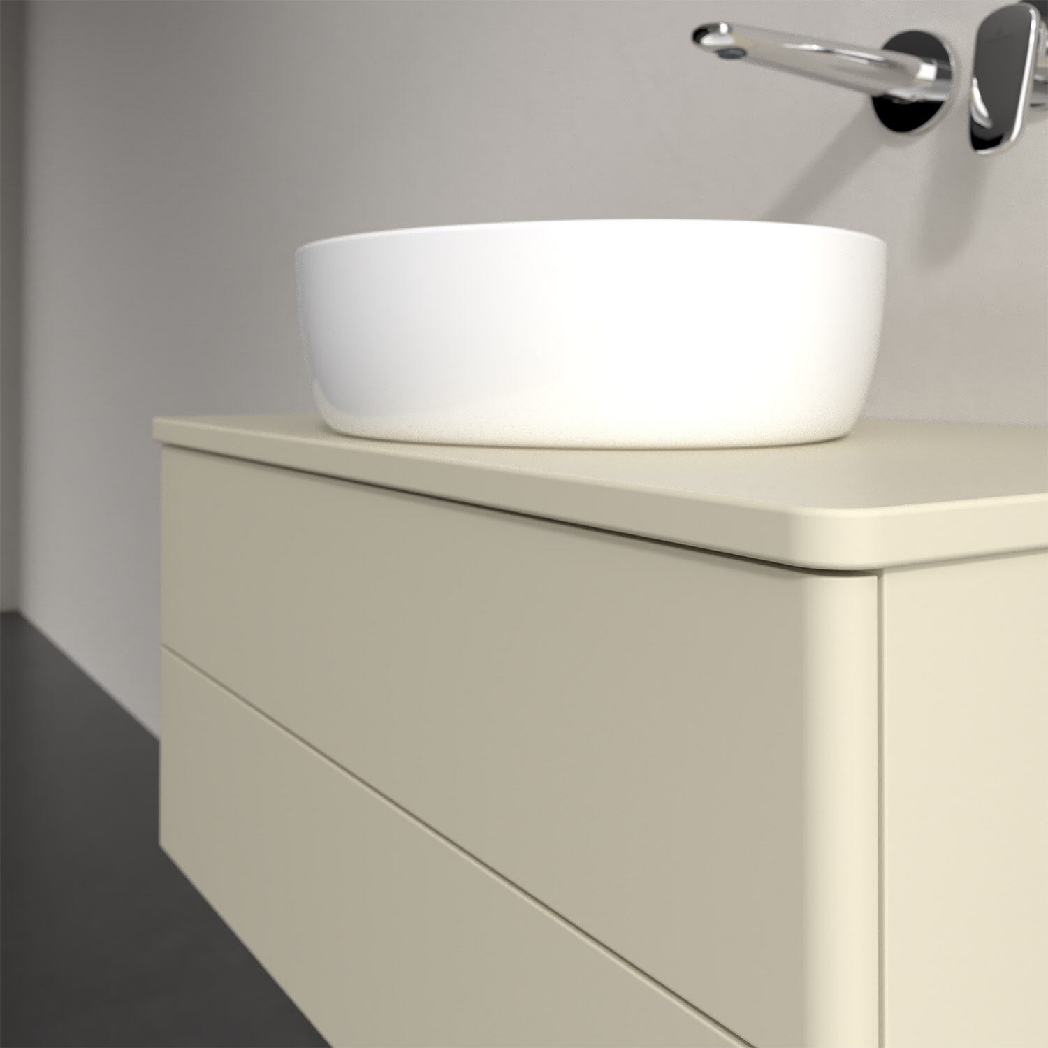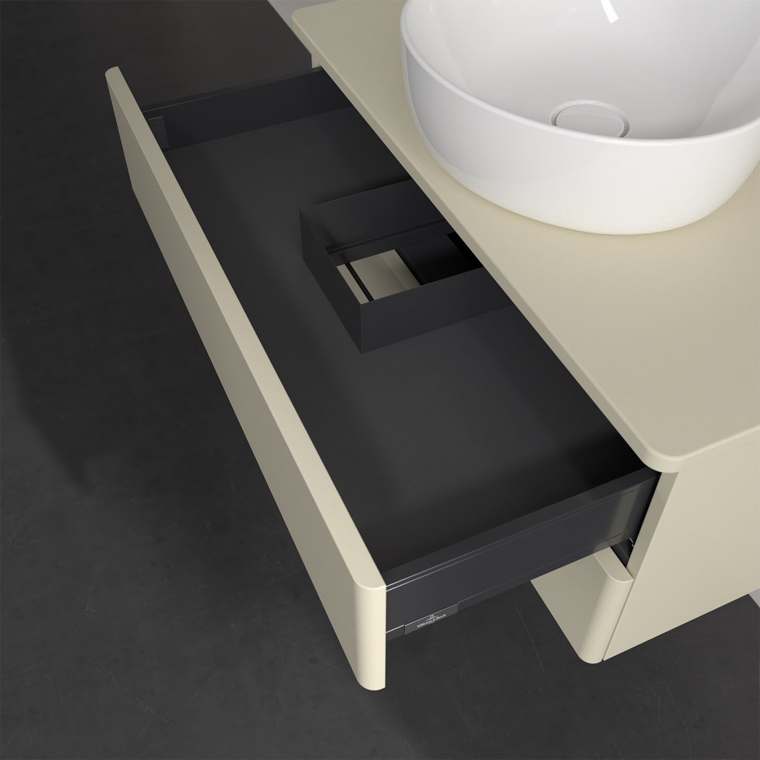 Für diesen Waschbeckenunterschrank stehen Ihnen Aufsatzwaschtische aus verschiedenen Serien zur Verfügung (siehe "Passliste" unter Downloads). Ein ausgewähltes Beispiel finden Sie im Zubehör. Den Waschtisch bitte separat mitbestellen.
