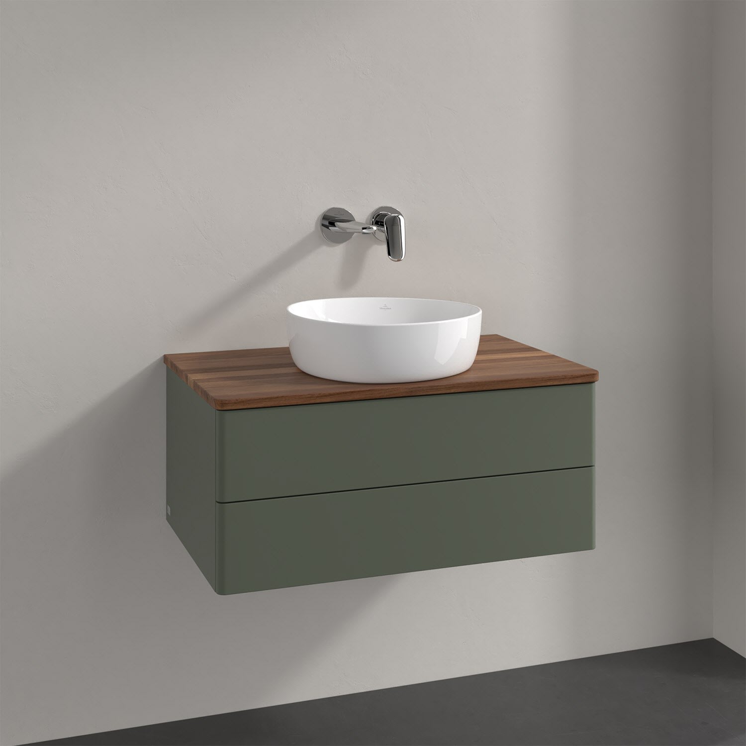 Villeroy & Boch Antao Waschbeckenunterschrank, 80 x 19 cm, 2 Auszüge, Fronten ohne Struktur, ohne Hahnloch