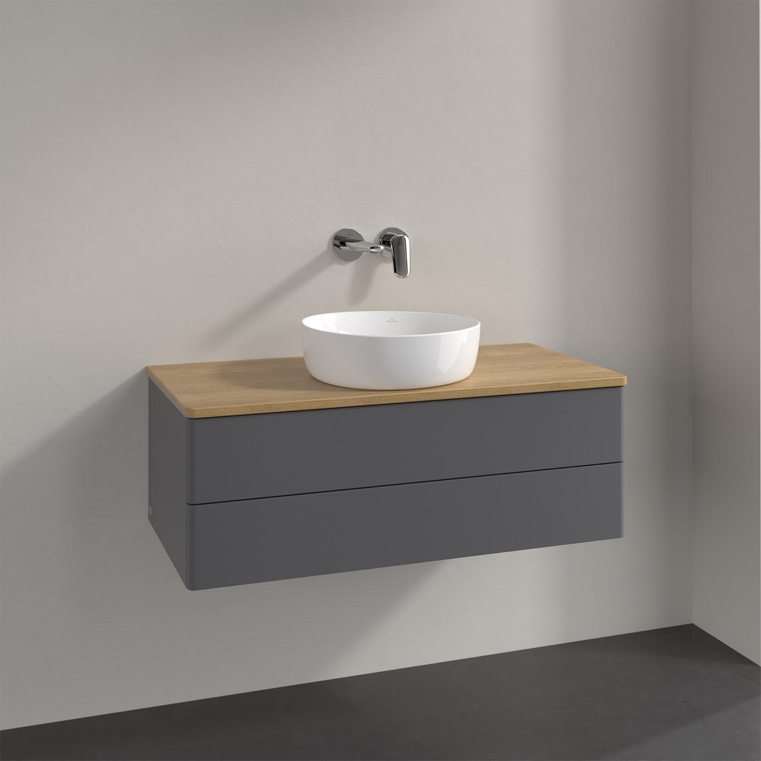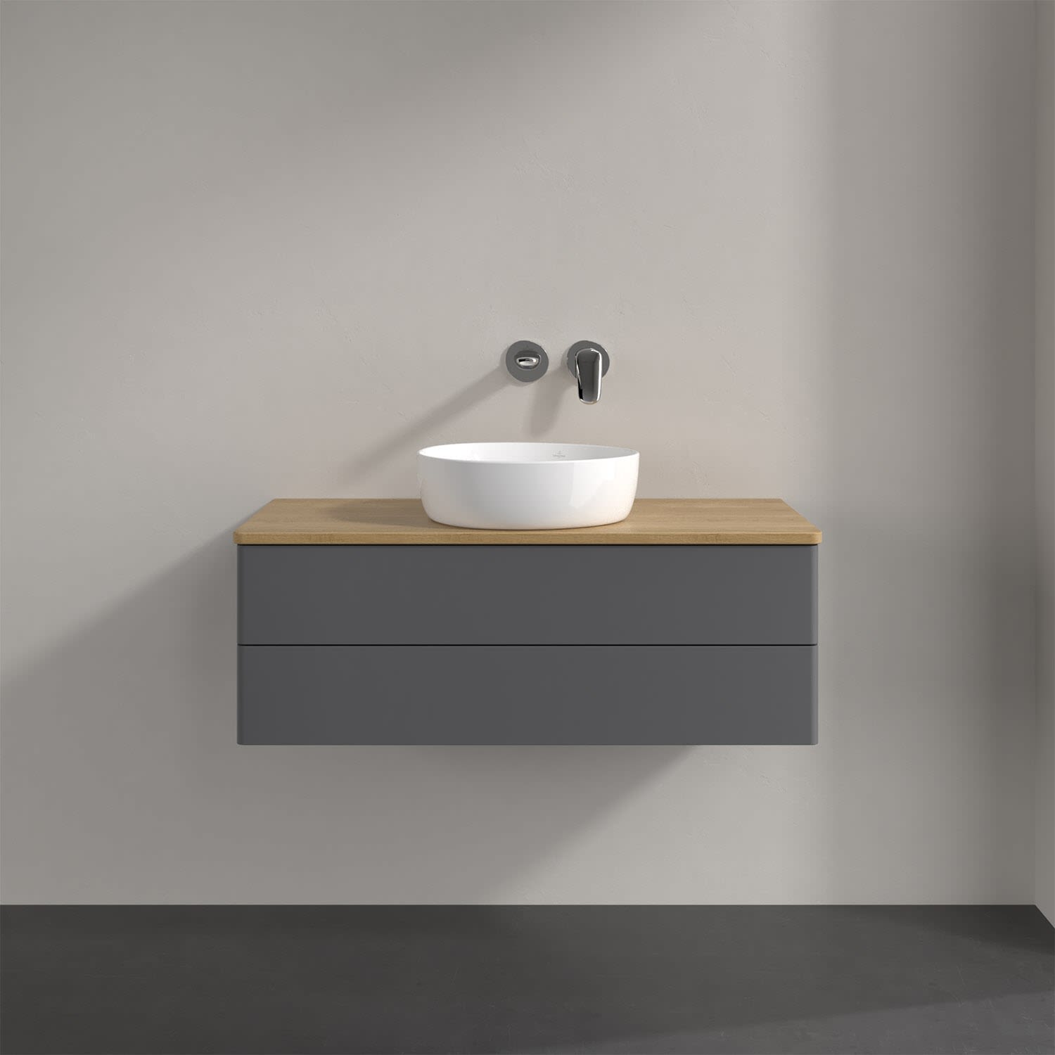 Villeroy & Boch Antao Waschbeckenunterschrank, 100 x 19 cm, 2 Auszüge, Fronten ohne Struktur, ohne Hahnloch