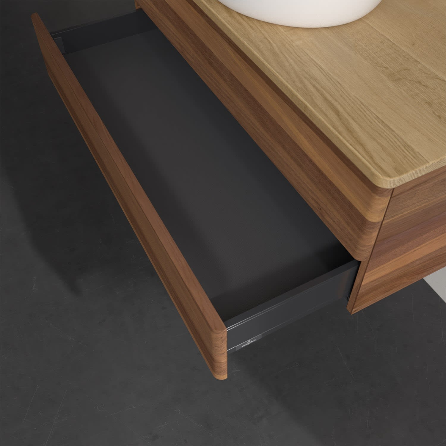 Villeroy & Boch Antao Waschbeckenunterschrank, 100 x 19 cm, 2 Auszüge, Fronten ohne Struktur, ohne Hahnloch