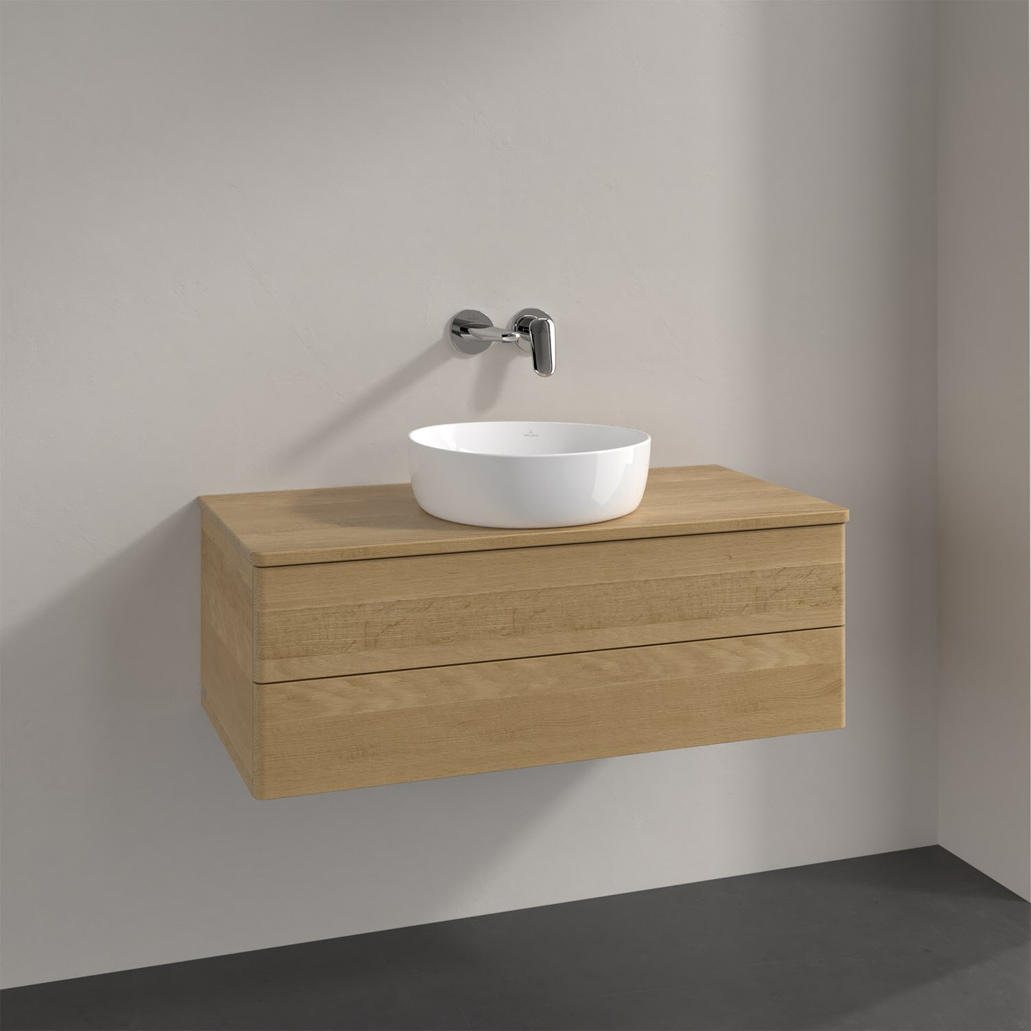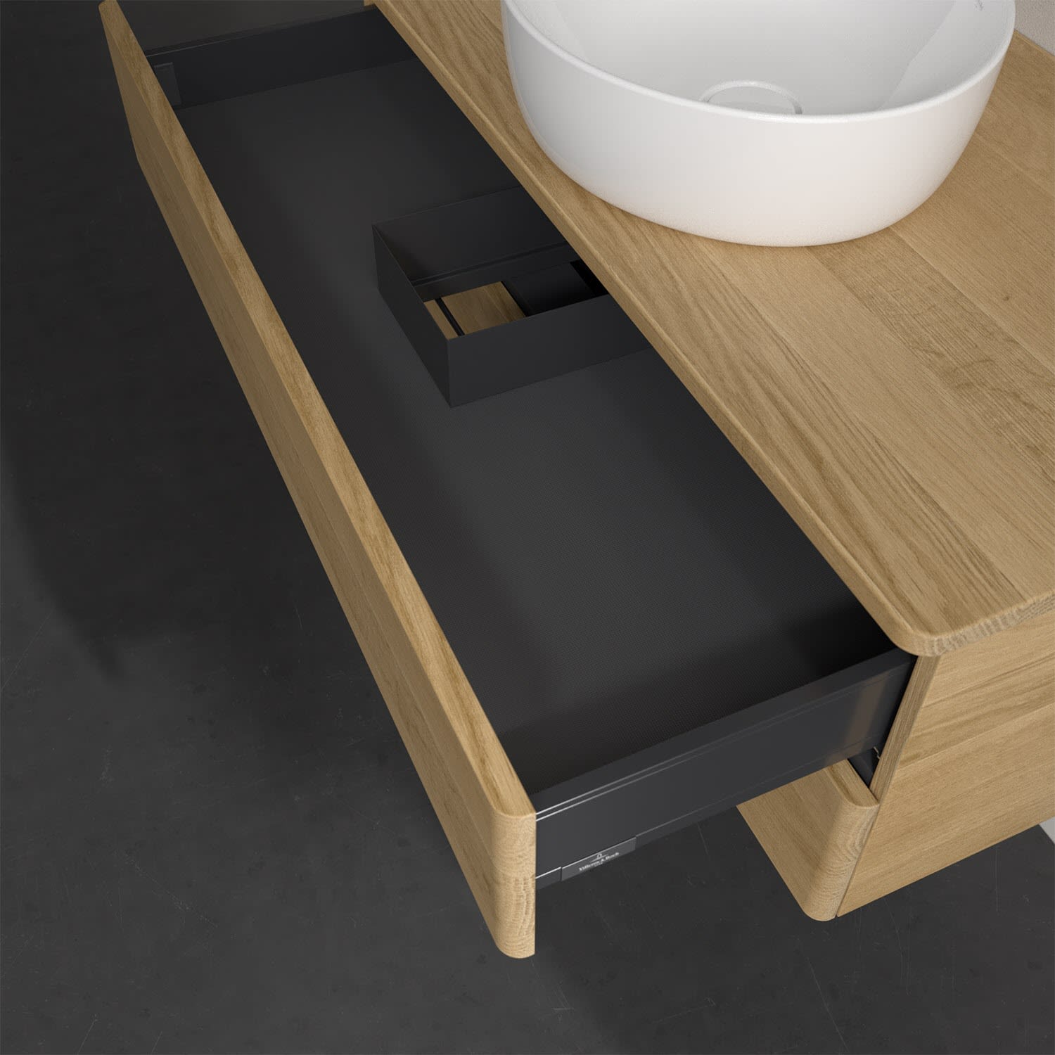 Villeroy & Boch Antao Waschbeckenunterschrank, 100 x 19 cm, 2 Auszüge, Fronten ohne Struktur, ohne Hahnloch