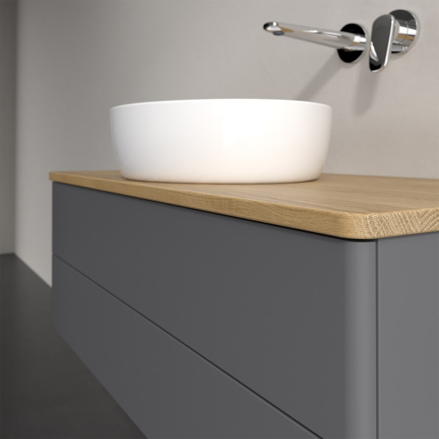 Für diesen Waschbeckenunterschrank stehen Ihnen Aufsatzwaschtische aus verschiedenen Serien zur Verfügung (siehe "Passliste" unter Downloads). Ein ausgewähltes Beispiel finden Sie im Zubehör. Den Waschtisch bitte separat mitbestellen.