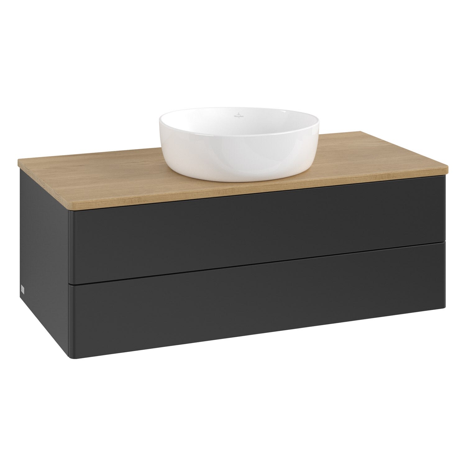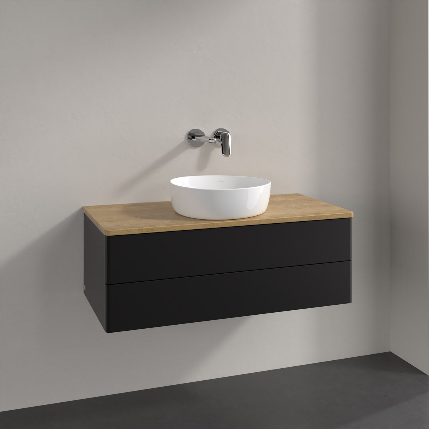 Villeroy & Boch Antao Waschbeckenunterschrank, 100 x 19 cm, 2 Auszüge, Fronten ohne Struktur, ohne Hahnloch